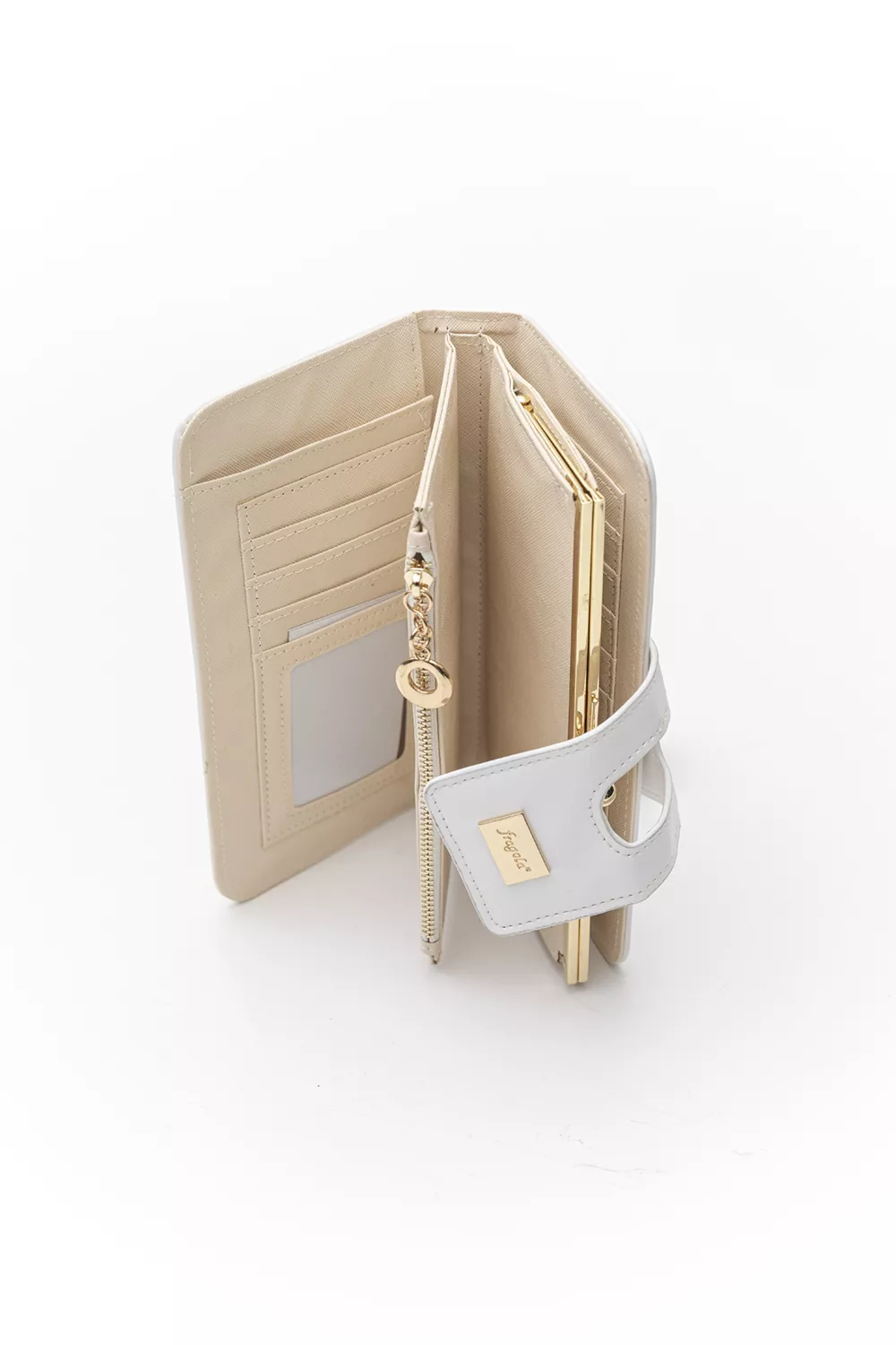 Μεγάλο πορτοφόλι με γλώσσα με μαγνητικό button. Στο εσωτερικό υπάρχουν πολλές θήκες για κάρτες και έξτρα μεγάλες θέσεις για την ταυτότητα και τις σημειώσεις σας. Διαχωρισμένη θήκη με φερμουάρ και έξτρα θήκη με στόμιο. Χώρος στο μέσον του για το κινητό σας ή τις σημειώσεις σας.Υλικό: Ματ οικολογικό δέρμα