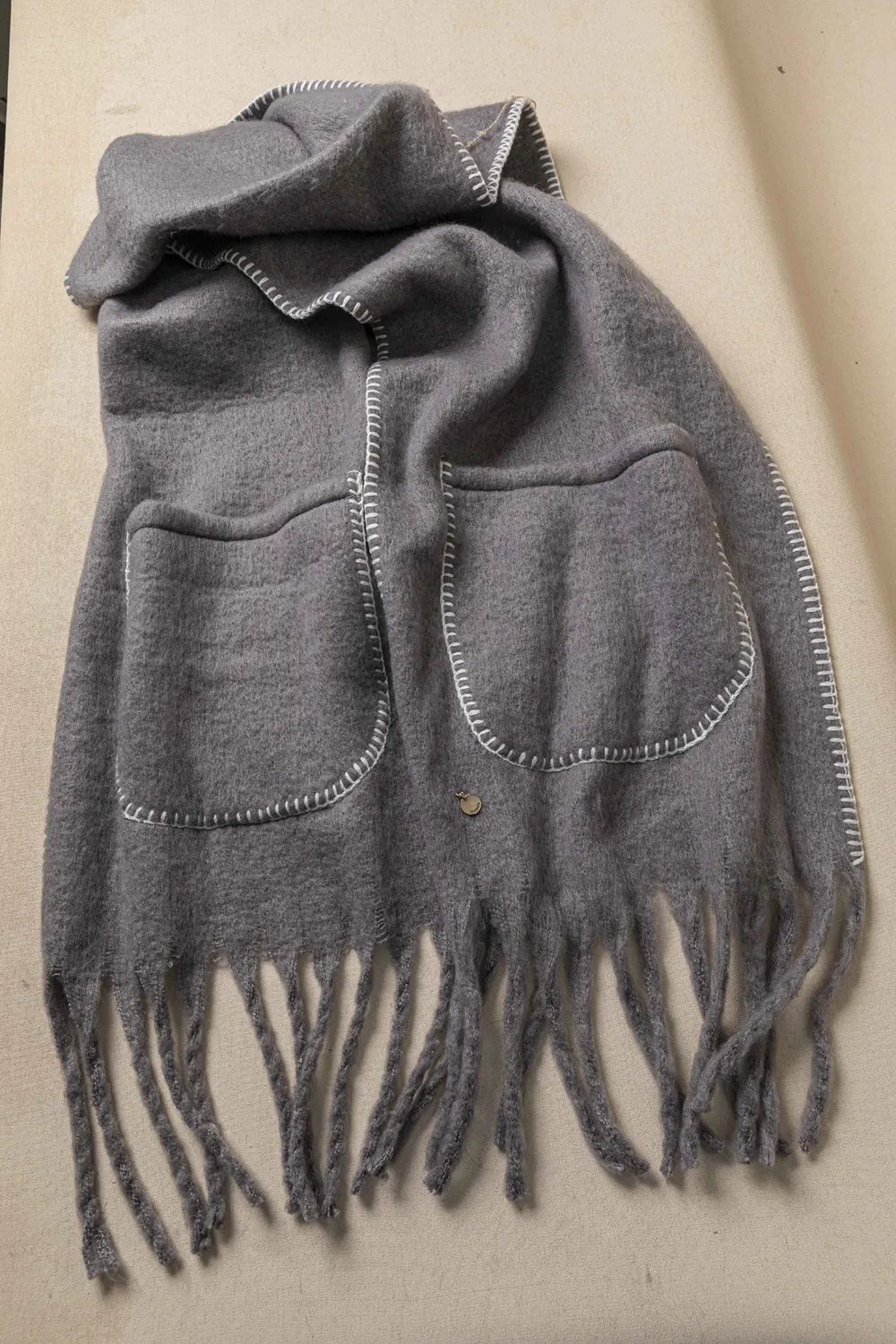 Κουβέρτα-πασμίνα για πολύ νεανικές εμφανίσεις. Εξαιρετικά soft υφή!! Διαθέτει δύο μεγάλες τσέπες και της δίνουν retro style.