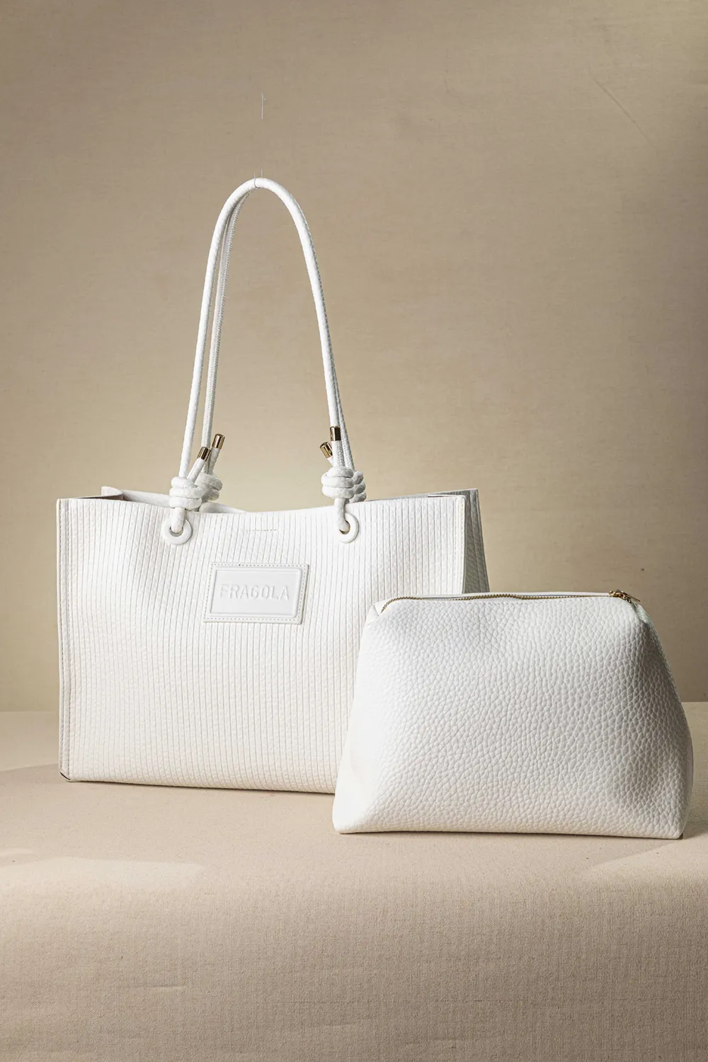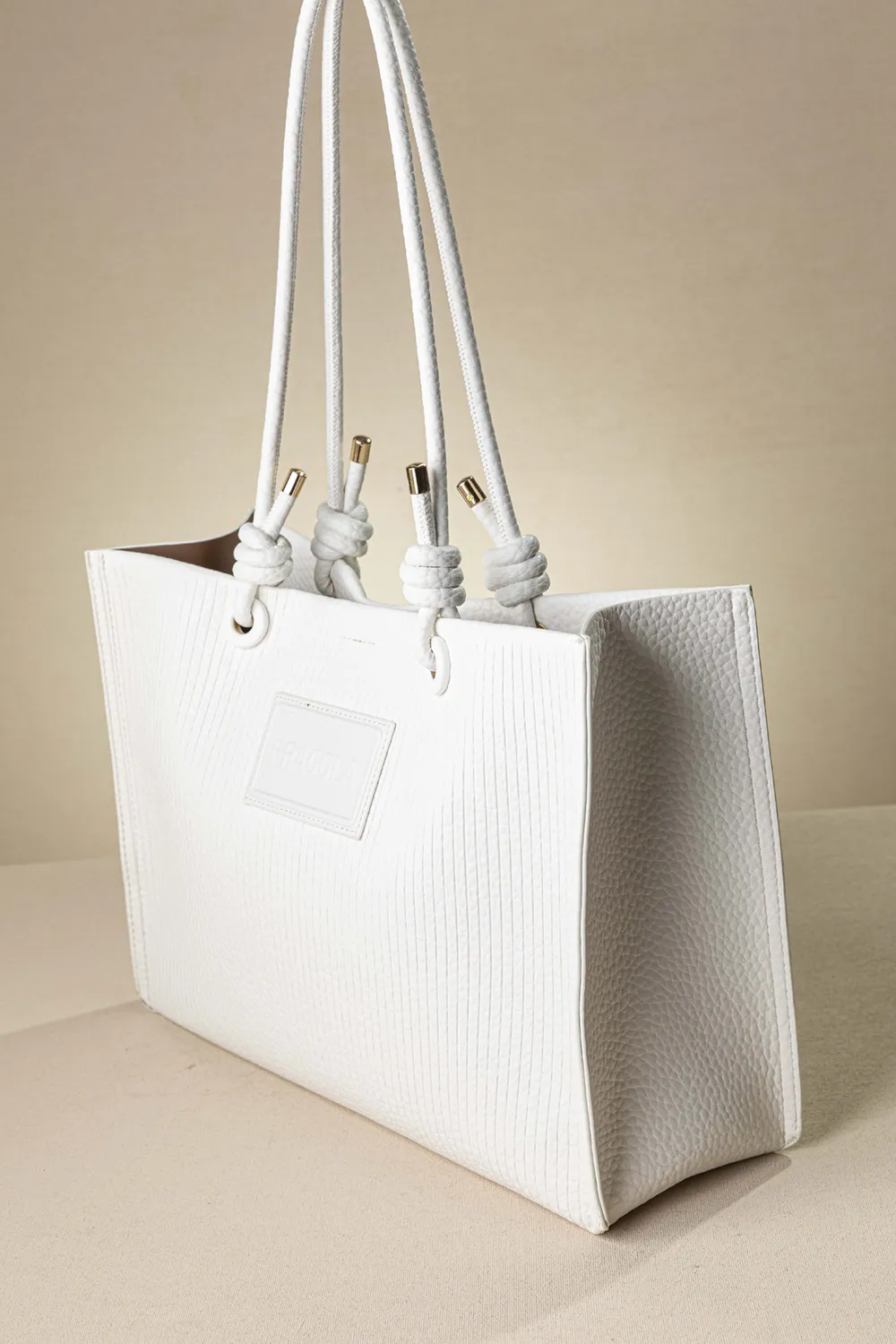 Τετράγωνη πανάλαφρη τσάντα ώμου, μεγάλης χωρητικότητας, η κατάλληλη επιλογή για όλη την ημέρα. Η τσάντα κλείνει με μαγνητικό μπουτόν. Περιλαμβάνει ευρύχωρο εσωτερικό τσαντάκι που ασφαλίζει με φερμουάρ. Οι ναυτικοί κόμποι στα "χέρια" της και τα μεταλλικά της στοιχεία της δίνουν μια ιδιαίτερη ομορφιά!