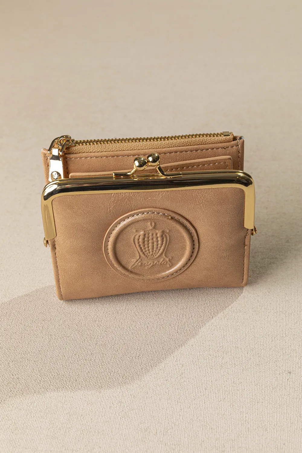 Μικρό elegant πορτοφόλι με πολλές θήκες για κάρτες. Διπλός χώρος για κάρτες εσωτερικά που κλείνει με μαγνητικό button και φυσικά θήκη για χαρτονομίσματα. Η κερματοθήκη του έχει μεταλλικό vintage κλείσιμο και διαθέτει έξτρα θήκη που κλείνει με μεταλλικό φερμουάρ.