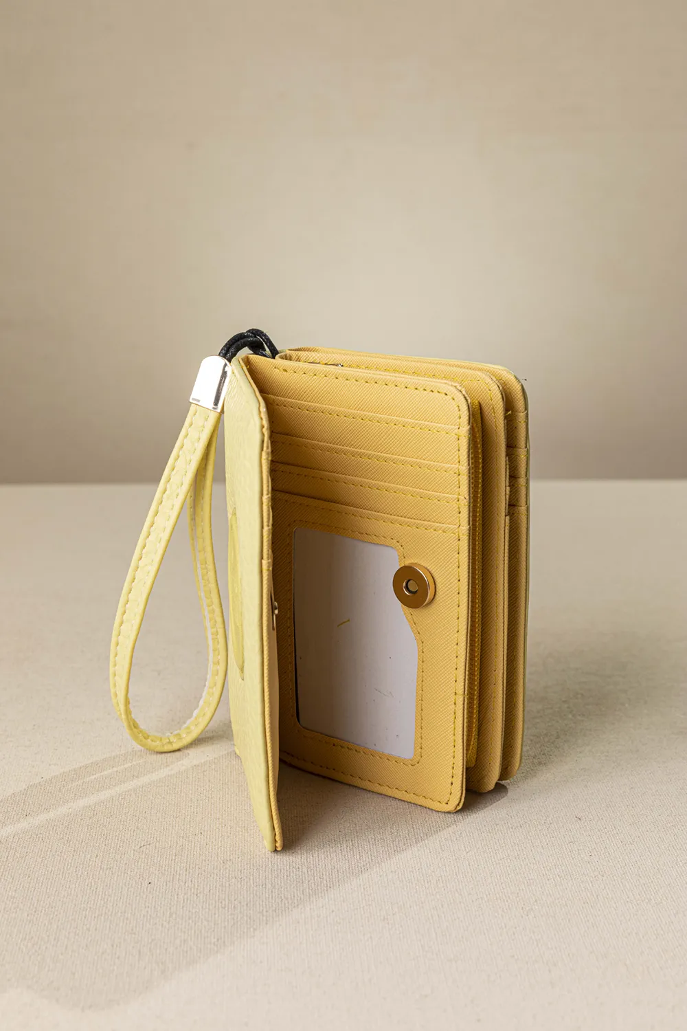 Πορτοφόλι σε μεσαίο μέγεθος, με δύο διαφορετικά ανοίγματα που κλείνουν με μαγνητικό button.Πολλές θήκες για κάρτες. Φερμουάρ για τα κέρματα και διαχωριστικό με έξτρα τσέπη με φερμουάρ. Υλικό: Συνθετικό δέρμα με μαλακή υφή