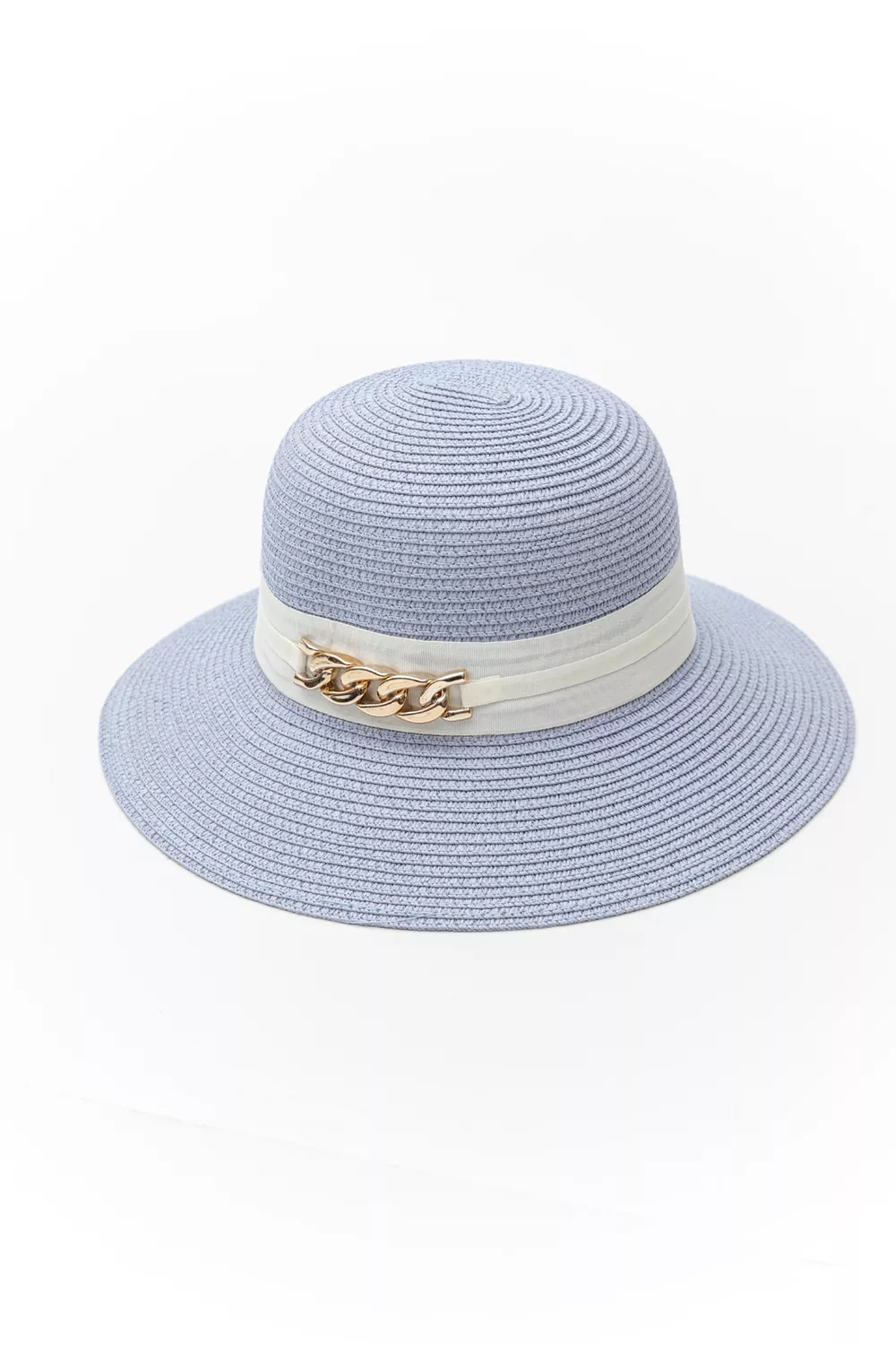 Γυναικείο ψάθινο καπέλο με διακοσμητική αλυσίδα Γυναικείο ψάθινο καπέλο με διακοσμητική αλυσίδα