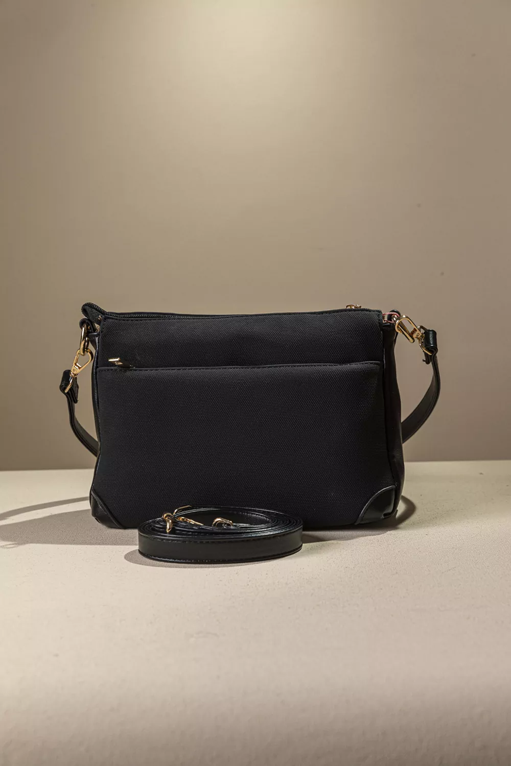 • Μια μεγάλη τσέπη με φερμουάρ στο πίσω μέρος. Διαθέτει ένα κοντό χέρι για τον ώμο και ένα μακρύ με αυξομείωση για να τη φοράτε χιαστί.