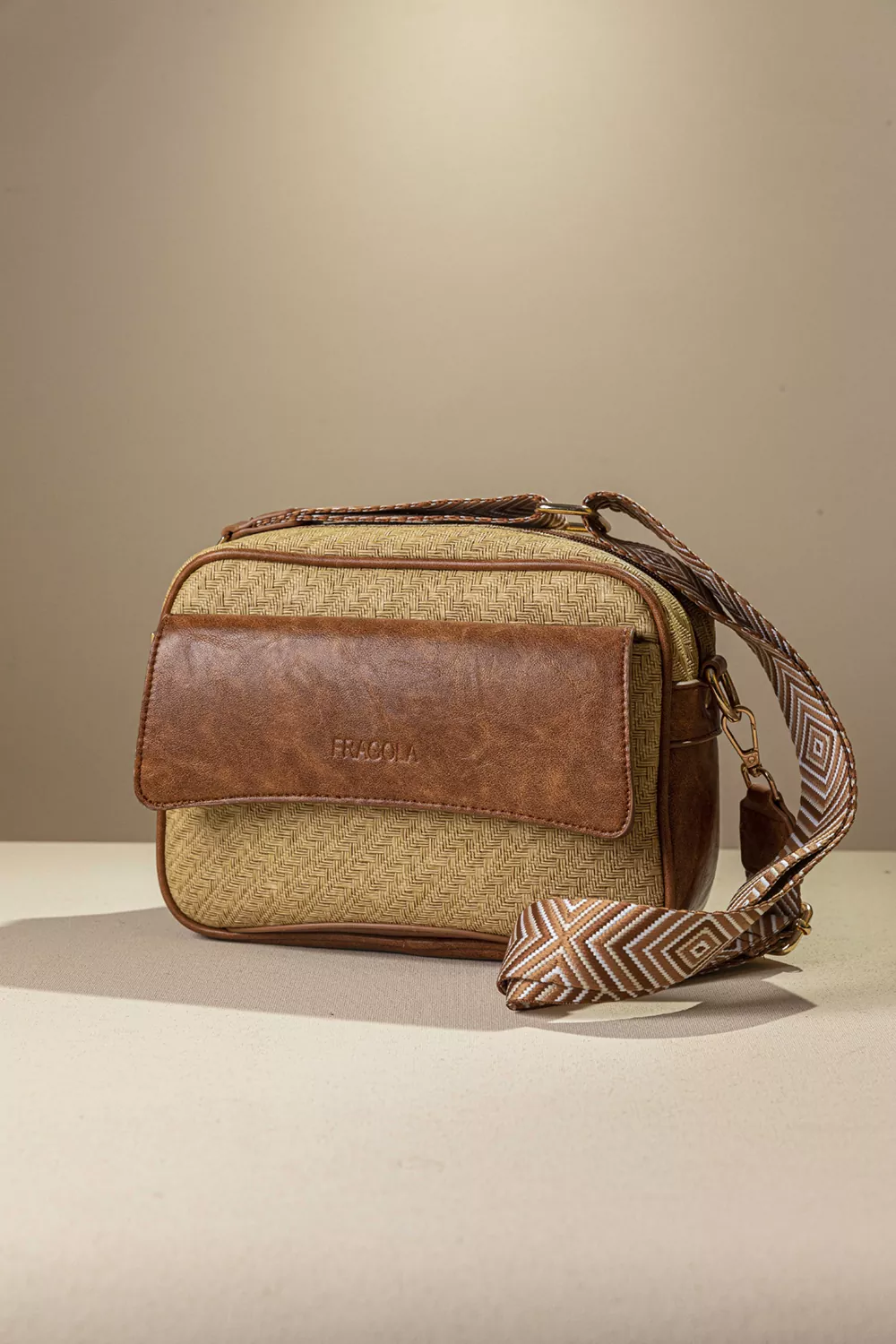 Υλικό: Συνθετικό δέρμα με υφή ψάθας σε γήινες αποχρώσεις