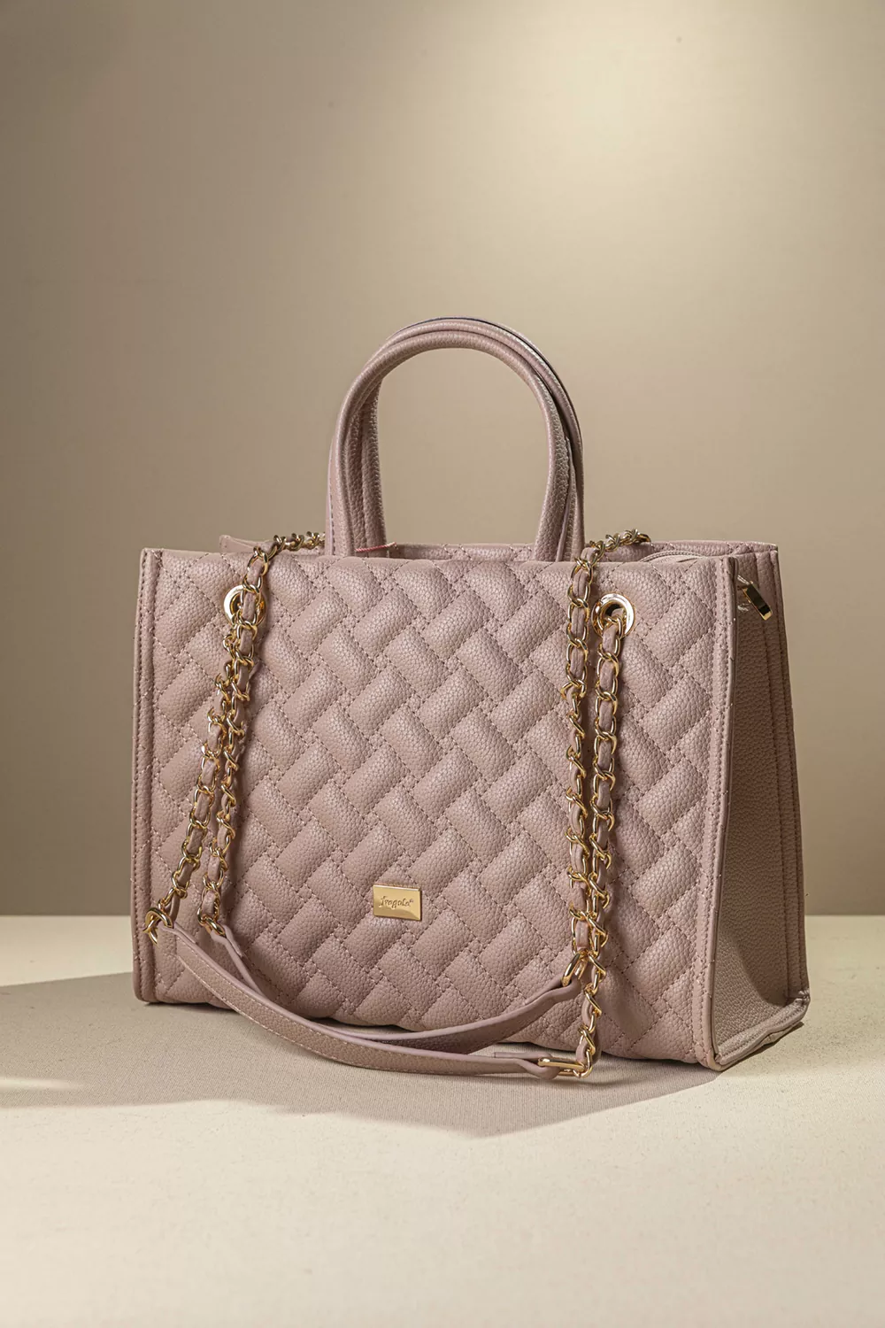 • Μια τσάντα που δείχνει σοβαρή αλλά έχει άποψη, καπιτονέ σχέδιο, μαλακή υφή και χρυσή αλυσίδα που κάνει "θόρυβο".