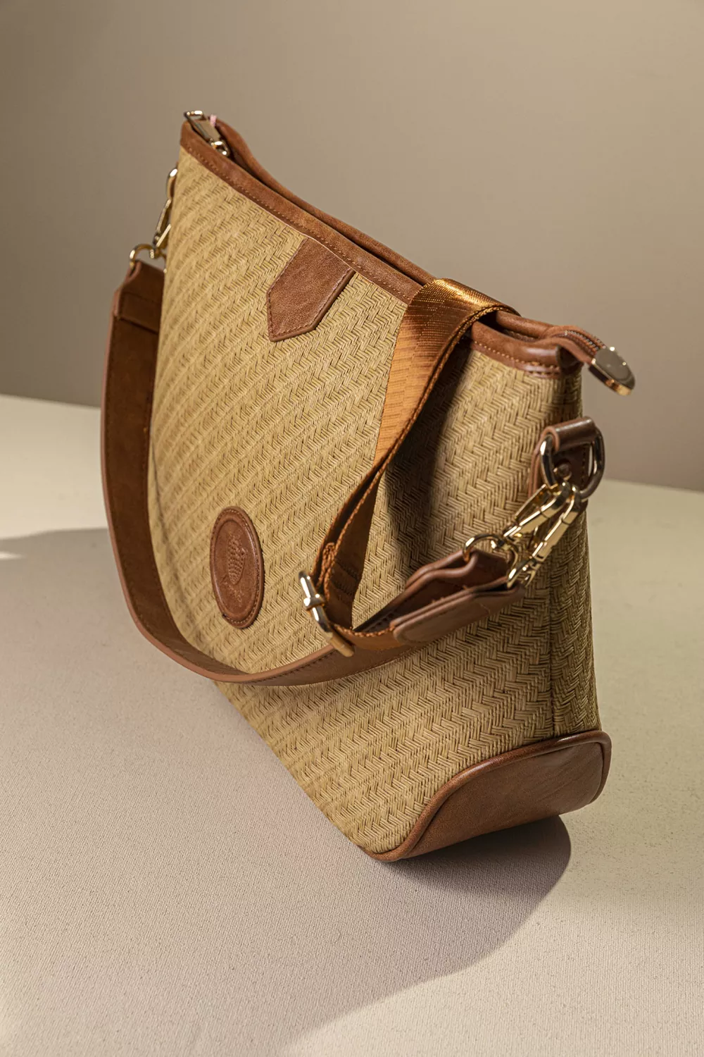 Υλικό: Συνθετικό δέρμα με υφή ψάθας σε γήινες αποχρώσεις.