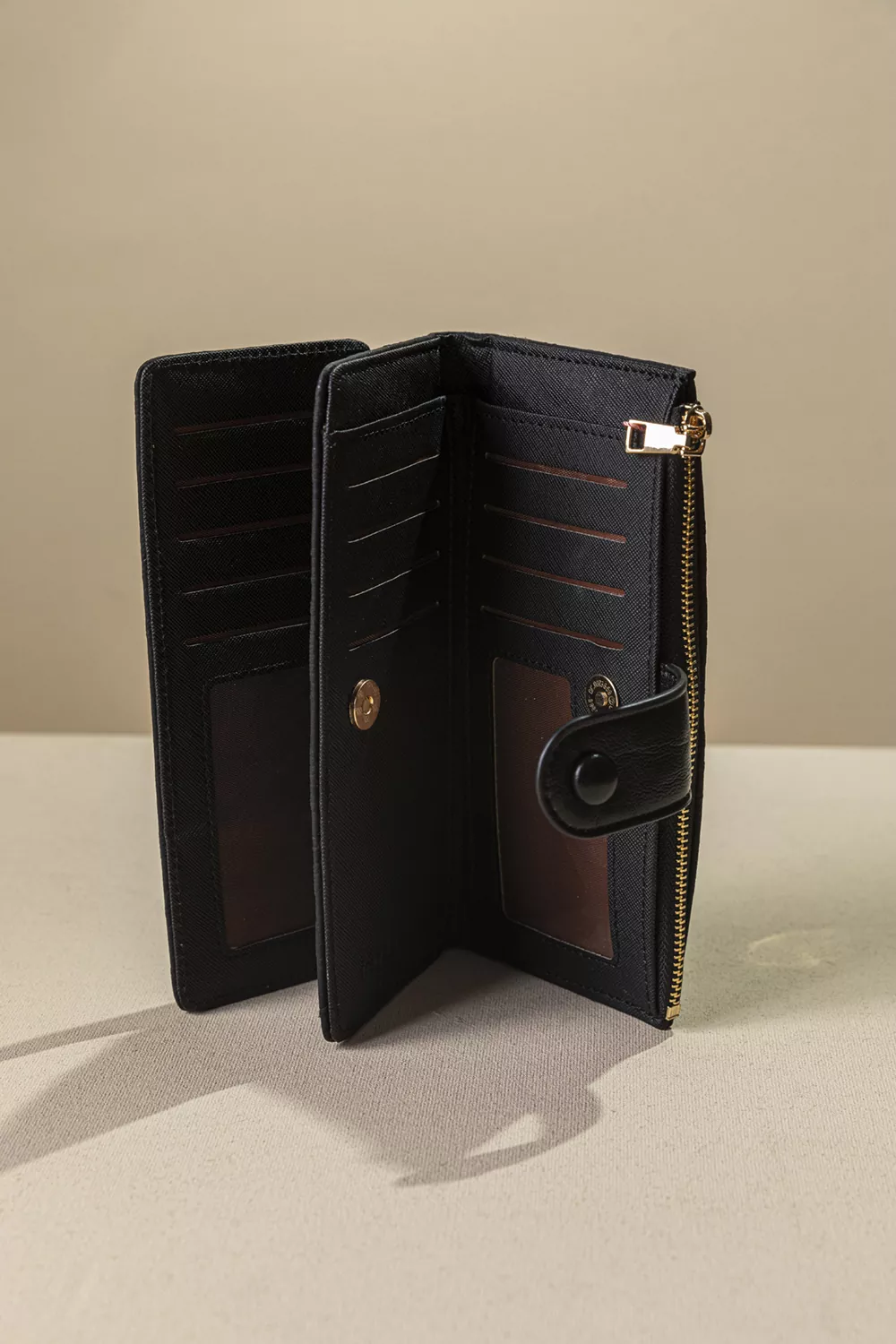• Κλείνει με γλώσσα και μπουτόν για μεγαλύτερη ασφάλεια, ενώ διαθέτει και ανεξάρτητη θήκη με φερμουάρ για κέρματα.