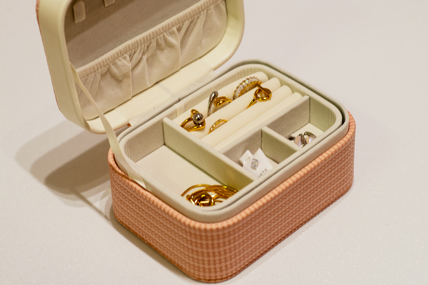 Μπιζουτιέρα από δερματίνη σε ροζ μπεζ χρώμα με πολλές θήκες για όλα σου τα κοσμήματα.