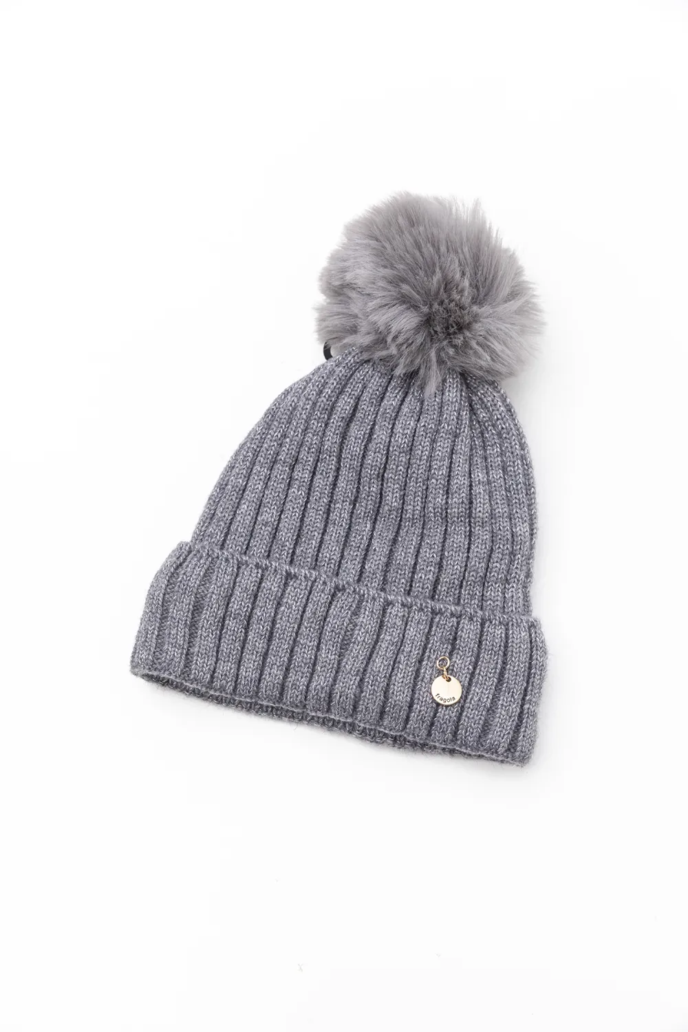 Γυναικείος σκούφος από ακρυλικό, πλεκτό, ζεστό ύφασμα με διακριτική γυαλάδα από μεταλλικά νήματα και πλέξη rip . Επένδυση από ζεστή ακρυλική γούνα.