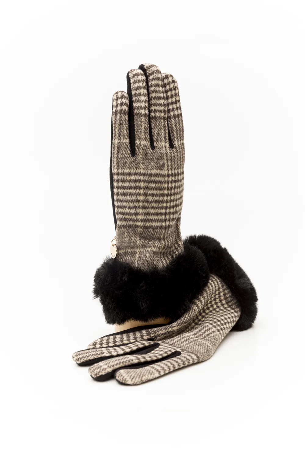 Καρό γυναικείο γάντι με συνθετική γούνα