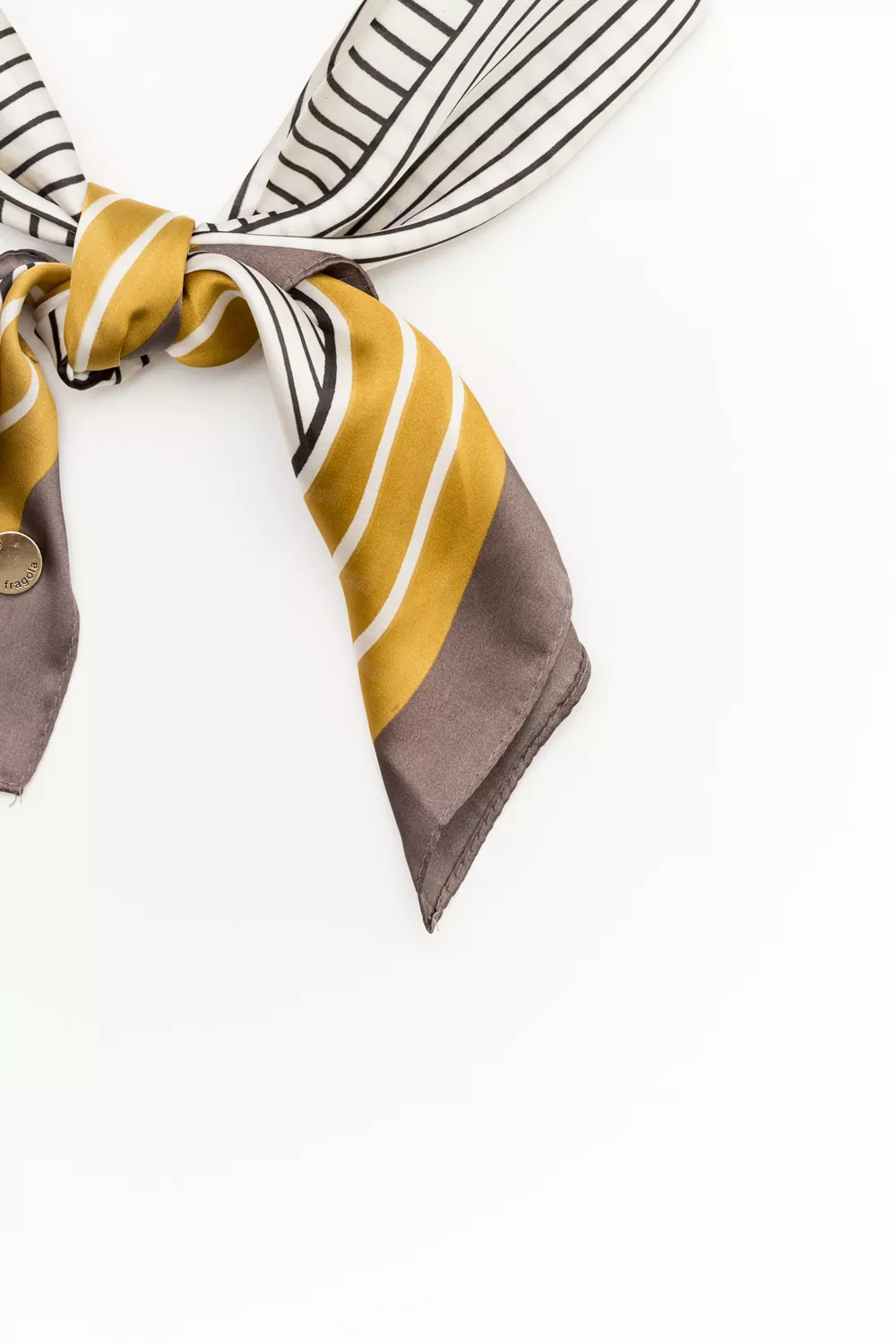 Κομψό και ευέλικτο, αυτό το τετράγωνο μαντήλι προσθέτει στιλ σε κάθε εμφάνιση. Κατασκευασμένο από υψηλής ποιότητας πολυεστέρα με σατέν υφή, προσφέρει απαλή αίσθηση και διακριτική λάμψη που θυμίζει μετάξι. Ιδανικό για να φορεθεί στον λαιμό, να δεθεί στα μαλλιά ή να διακοσμήσει την τσάντα σας, αποτελεί το απόλυτο αξεσουάρ που συνδυάζει πρακτικότητα και κομψότητα. Διαθέσιμο σε μοντέρνα prints και χρώματα που θα ανανεώσουν άμεσα το καθημερινό σας look.