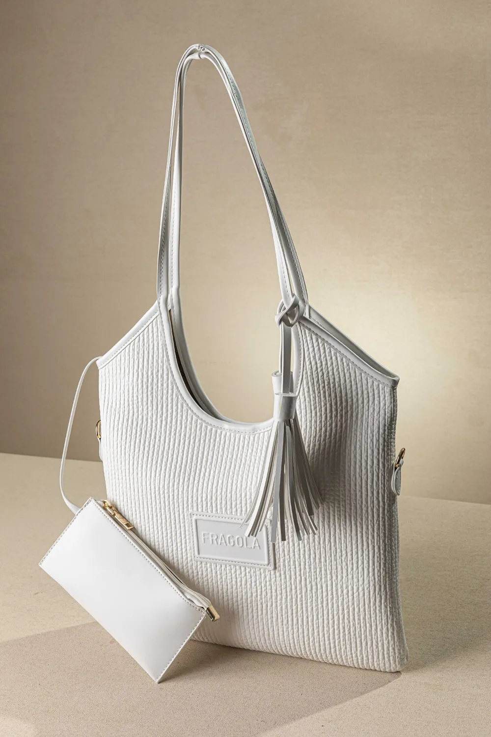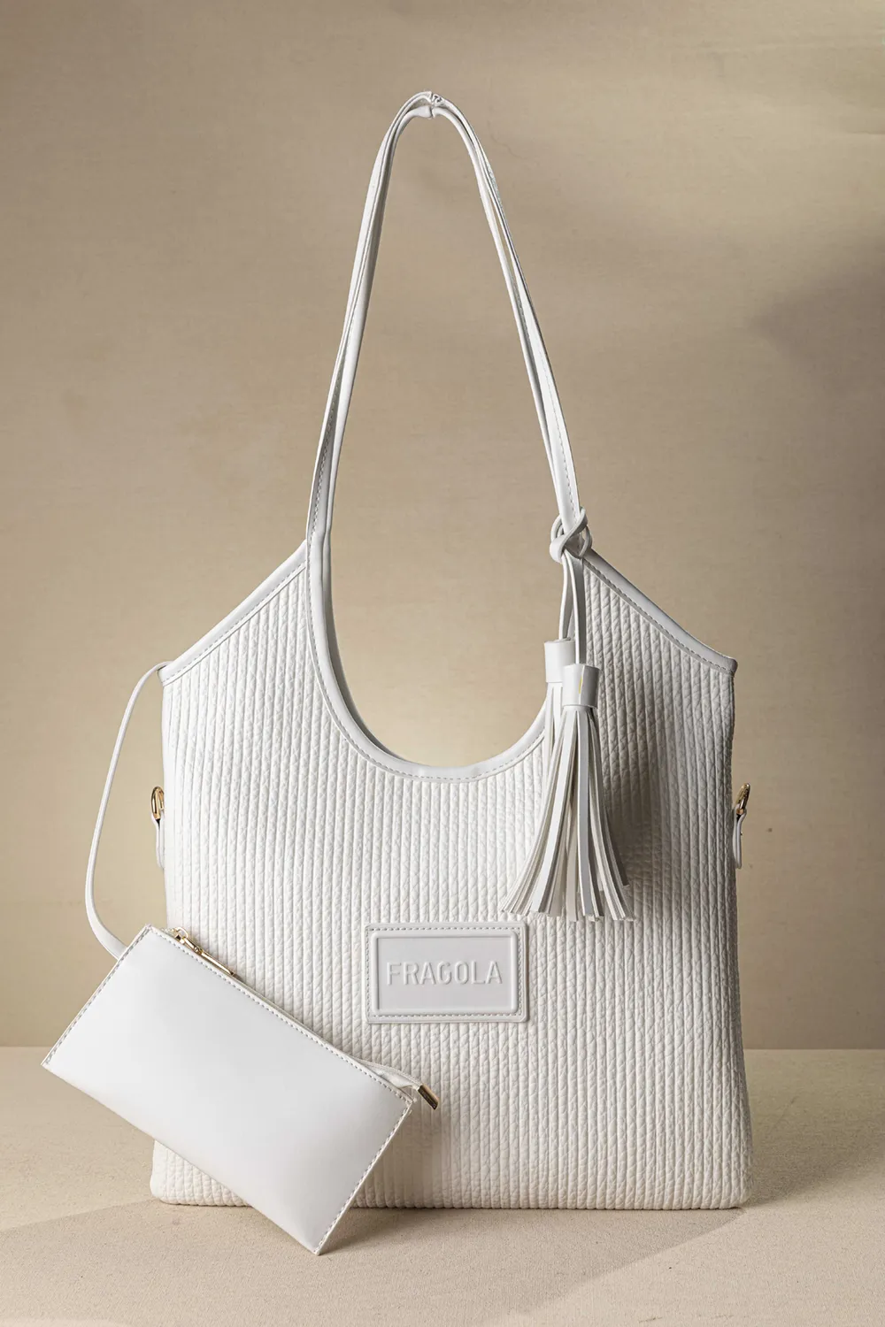 Ελαφριά τσάντα ώμου που κλείνει με μαγνητικό Button και έχει ένα αφαιρούμενο έχτρα μικρό τσαντάκι στο εσωτερικό της για αποθήκευση κλειδιών ή μικροαντικειμένων. Διαθέτει έξτρα αυξομειούμενο "χεράκι" για να τη φορέσετε χιαστί. Φορώντας τη χιαστί διπλώνει το μπροστινό της μέρος και ουσιαστικά μετατρέπεται σε ένα φάκελο. Διπλωμένη μπορείτε και απλά να την κρατάτε στο χέρι σας, σαν φάκελο, για μια απογευματινή βόλτα. Στο πίσω εξωτερικό μέρος της τσάντας υπάρχει έξτρα θήκη με φερμουάρ.