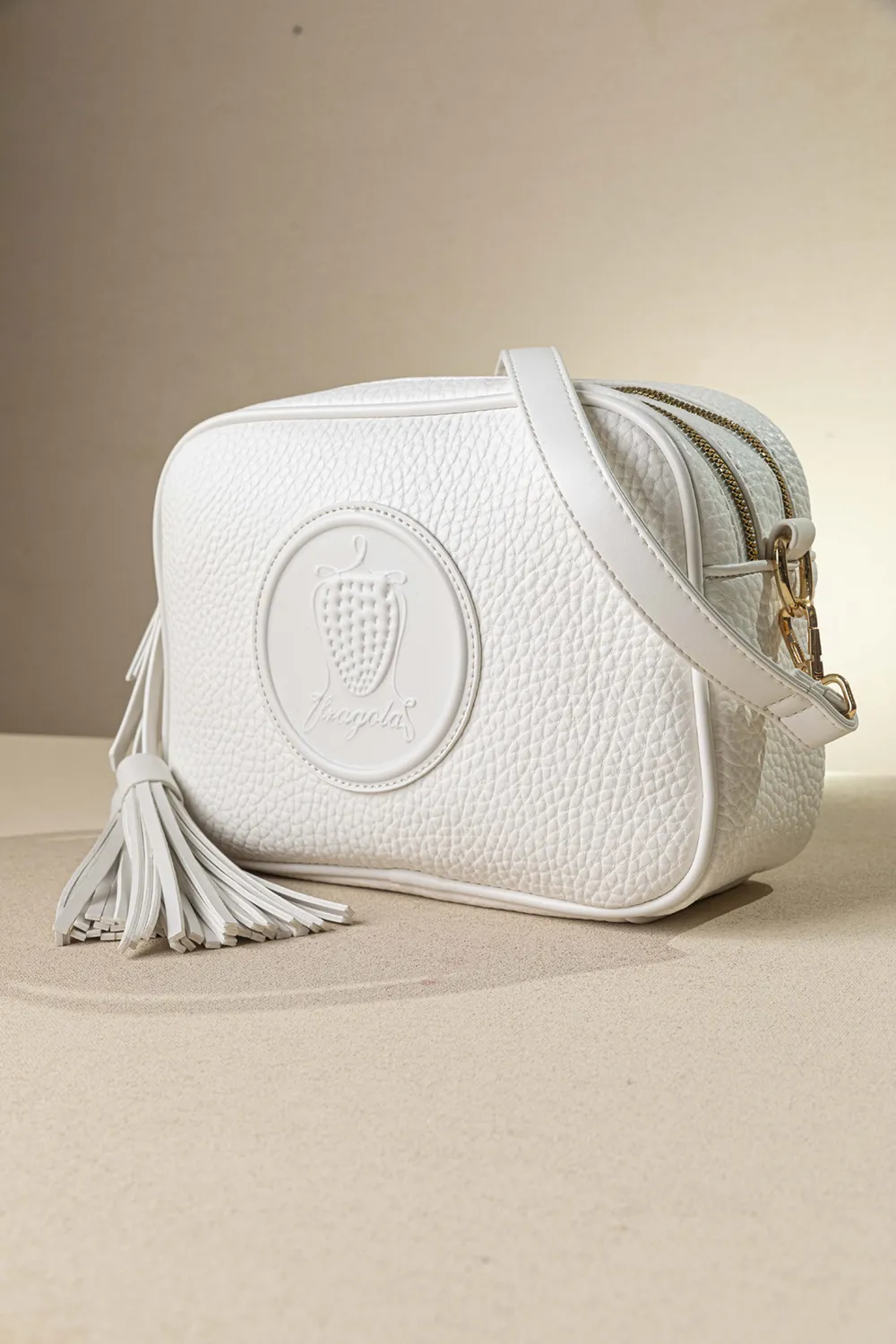 Χιαστί ή ώμου διθέσια τσάντα. Δύο απόλυτα διαχωρισμένοι κεντρικοί χώροι που κλείνουν με φερμουάρ.Διαθέτει ένα κοντό χέρι και ένα μακρύ "χέρα" για να μετατρέψετε την τσάντα σε χιαστί. Βοηθητικές μικρές θέσεις στο εσωτερικό της τσάντας και μια βοηθητική τσέπη με φερμουά στο εξωτερικό πίσω μέρος της.