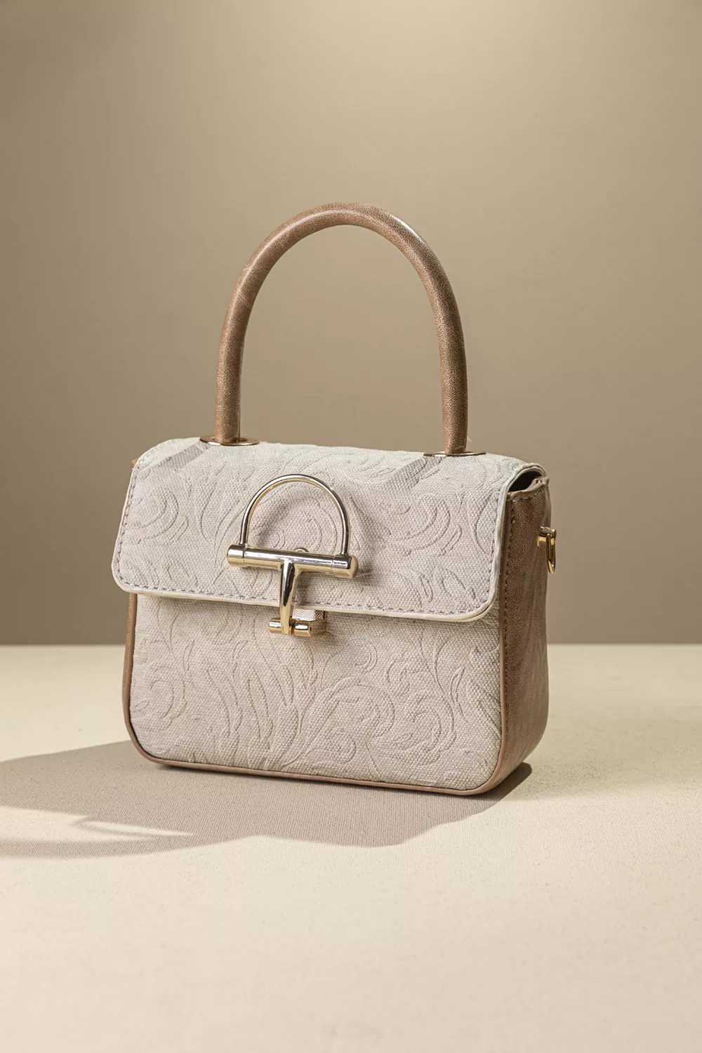 • Κομψή τσάντα χειρός με υφασμάτινη ανάγλυφη υφή και λεπτομέρειες συνθετικού δέρματος.