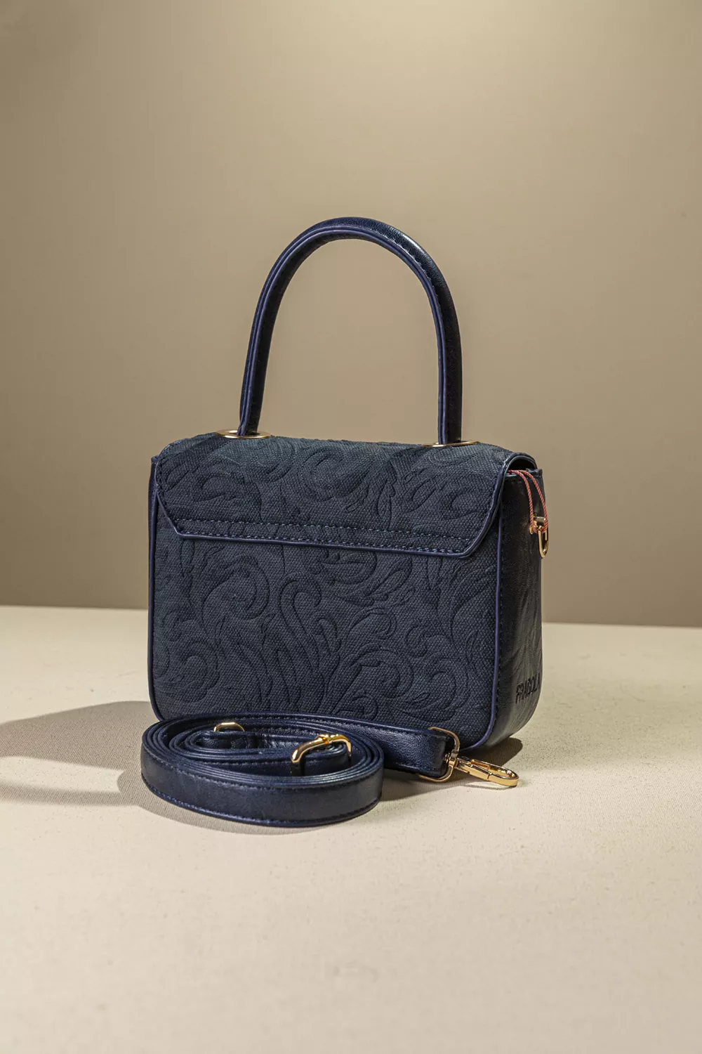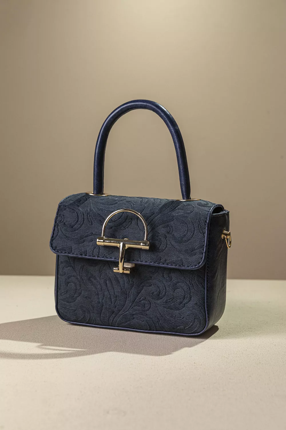 • Κομψή τσάντα χειρός με υφασμάτινη ανάγλυφη υφή και λεπτομέρειες συνθετικού δέρματος.