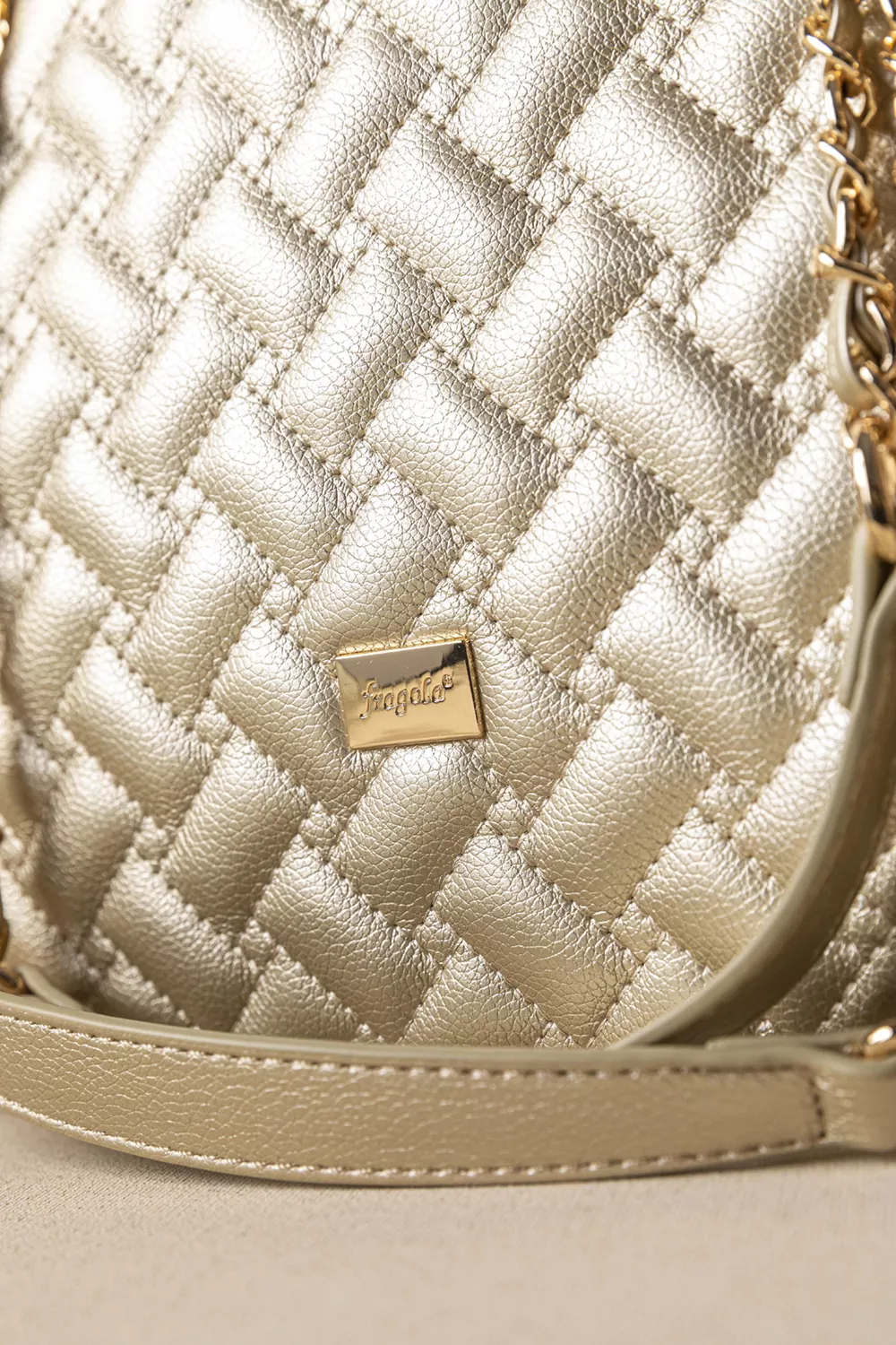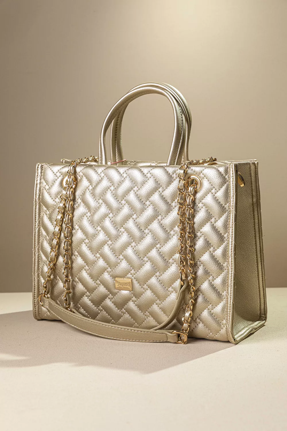 • Μια τσάντα που δείχνει σοβαρή αλλά έχει άποψη, καπιτονέ σχέδιο, μαλακή υφή και χρυσή αλυσίδα που κάνει "θόρυβο".