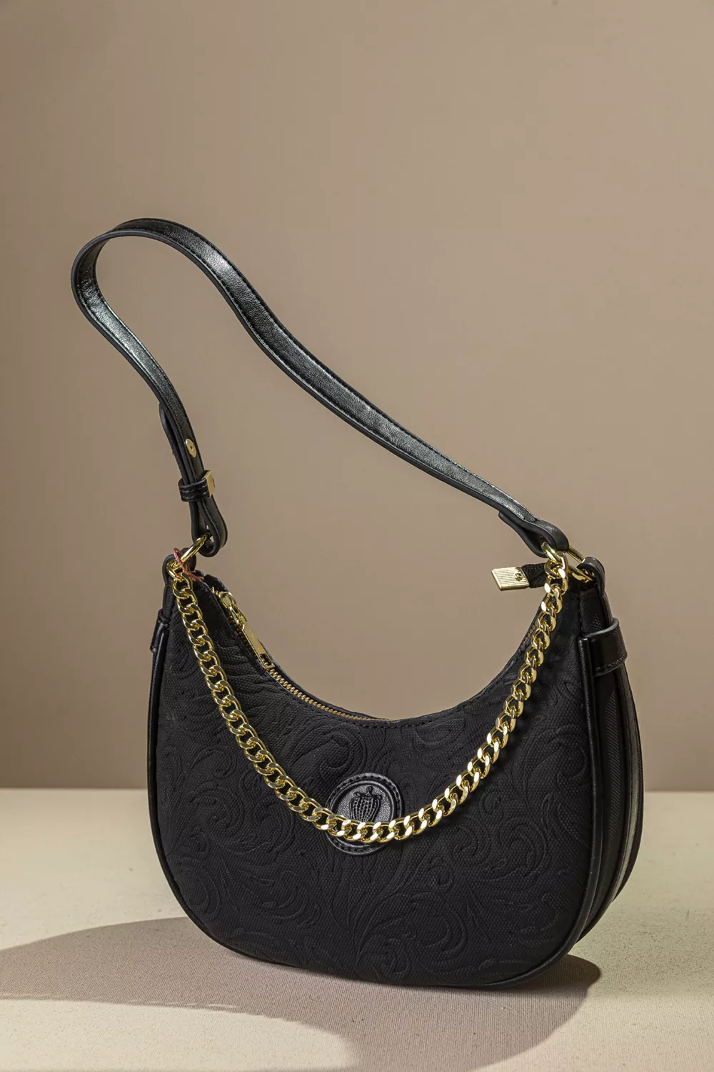 • Διακοσμείται με εντυπωσιακή χρυσή αλυσίδα στο μπροστινό μέρος καθώς και συνθετικό ανάγλυφο δέρμα με το logo της εταιρείας.