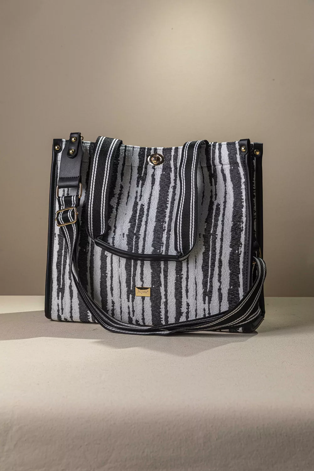 • Υφασμάτινη τσάντα με εντυπωσιακό μοτίβο και μοντέρνες λεπτομέρειες που ξεχωρίζουν.