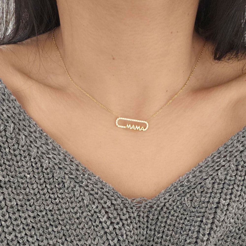 Γυναικείο Κολιέ Ατσάλινο ”ΜΑΜΑ”Με Πέτρες Ζιργκόν