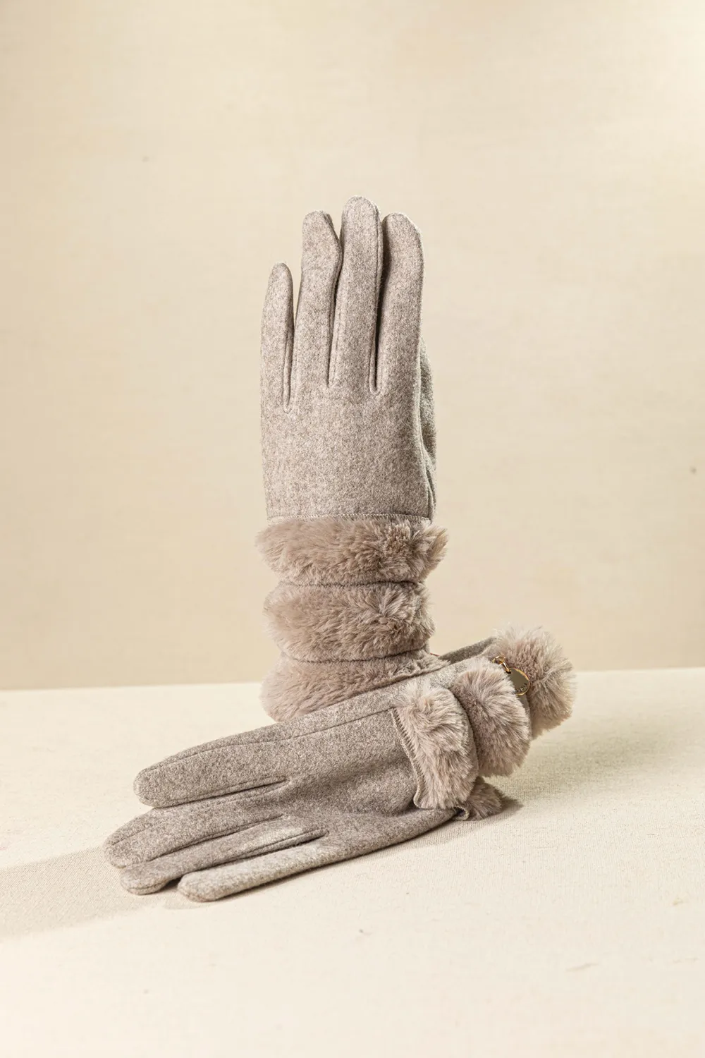 Κομψά και ζεστά γυναικεία γάντια με απαλή αφή και πολυτελή λεπτομέρεια με οικολογική γούνα στον καρπό.Ιδανικά για τις κρύες μέρες του Χειμώνα προσφέρουν στυλ και προστασία από το κρύο. Συνδιάζονται εύκολα με κάθε outfit. Διαθέτει ειδικό κέντημα για χρήση σε οθόνες αφής στον δείκτη και τον αντίχειρα και των δύο χεριών.