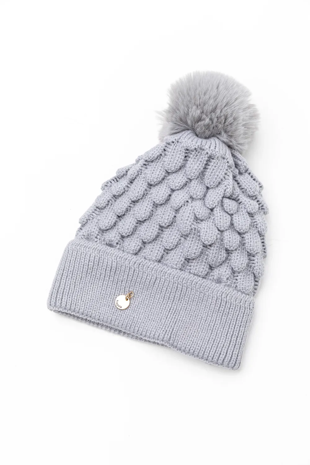 Γυναικείος ακρυλικός σκούφος με εντυπωσιακή πλέξη και ρεβέρ με πλέξη rip. Επένδυση από ζεστή ακρυλική γούνα.