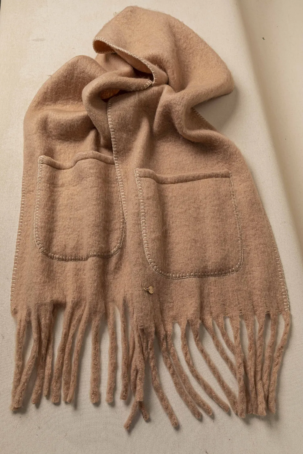 Κουβέρτα-πασμίνα για πολύ νεανικές εμφανίσεις. Εξαιρετικά soft υφή!! Διαθέτει δύο μεγάλες τσέπες και της δίνουν retro style.