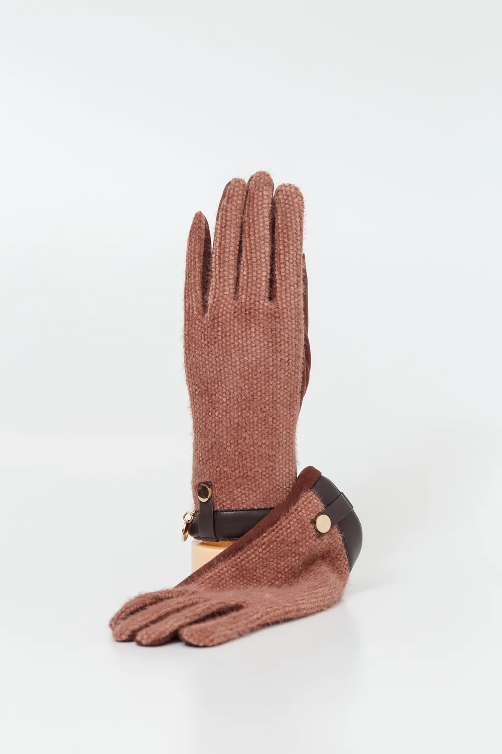 Γάντι γυναικείο, ακρυλικό με μπουκλέ υφή και εσωτερική επένδυση. Πατιλέτα από οικολογικό δέρμα με διακοσμητικό χρυσό button Διαθέτει ειδικό κέντημα για χρήση σε οθόνες αφής στον δείκτη και τον αντίχειρα και των δύο χεριών.