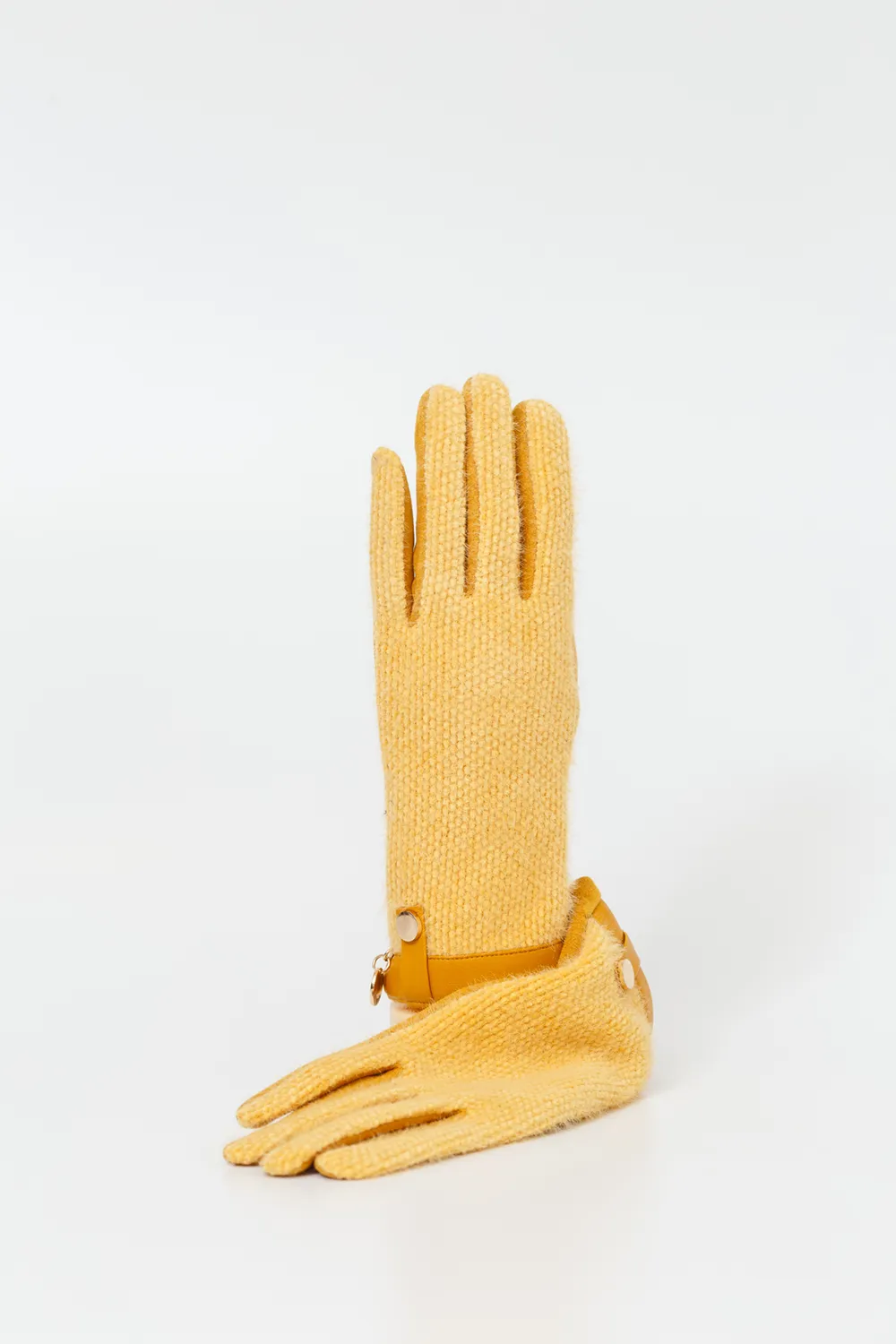 Γάντι γυναικείο, ακρυλικό με μπουκλέ υφή και εσωτερική επένδυση. Πατιλέτα από οικολογικό δέρμα με διακοσμητικό χρυσό button Διαθέτει ειδικό κέντημα για χρήση σε οθόνες αφής στον δείκτη και τον αντίχειρα και των δύο χεριών.