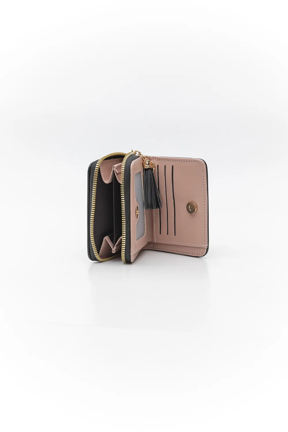 Μικρό πορτοφόλι που χωράει σε όλες τις τσάντες!! Στο εσωτερικό υπάρχουν θήκες για κάρτες και για την ταυτότητα. Με εξωτερικό φερμουάρ για τα ψιλά σας.Υλικό: Ματ οικολογικό δέρμα