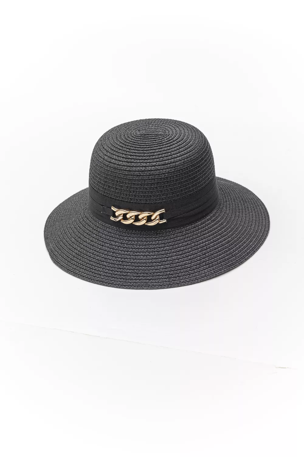 Γυναικείο ψάθινο καπέλο με διακοσμητική αλυσίδα Γυναικείο ψάθινο καπέλο με διακοσμητική αλυσίδα