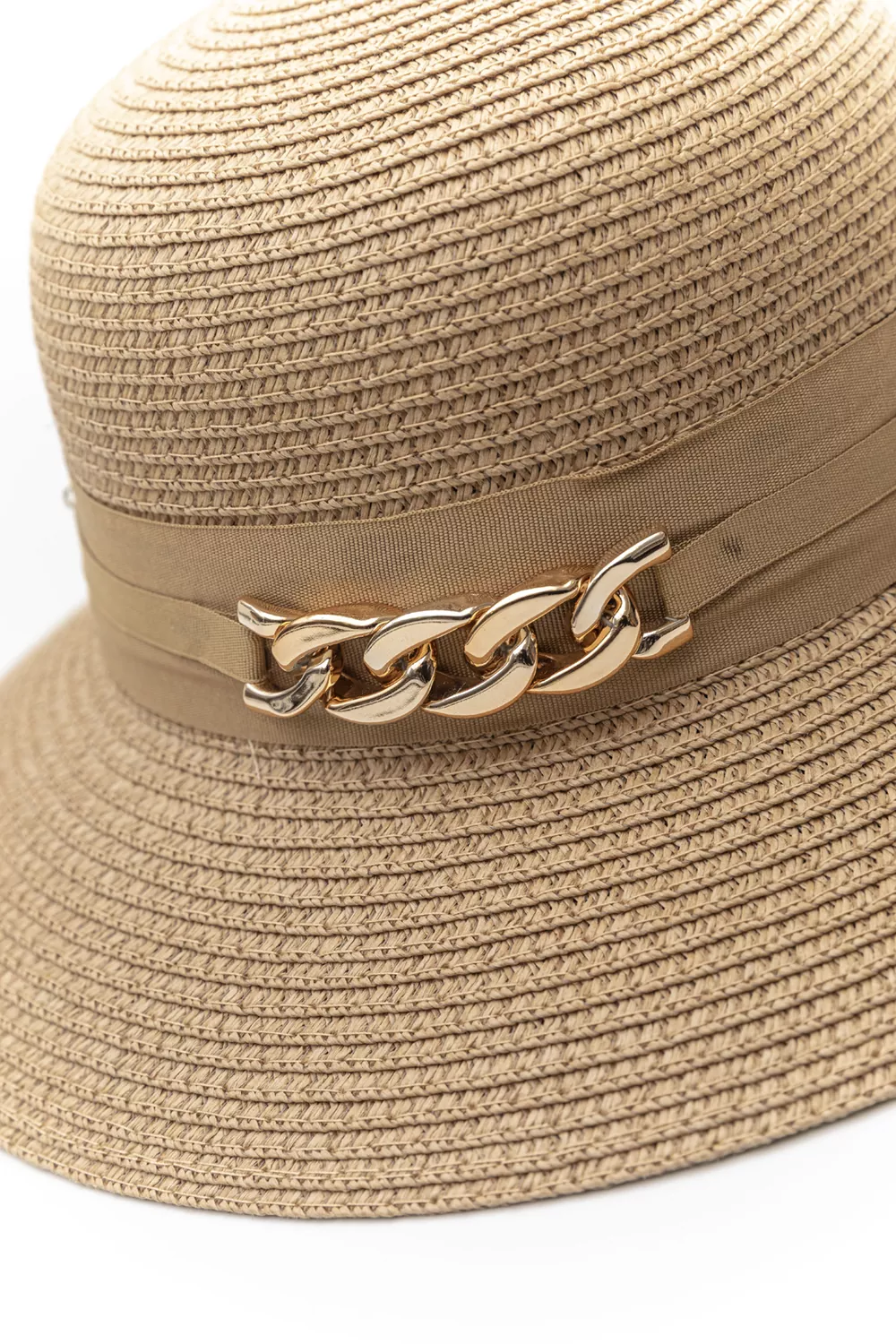Γυναικείο ψάθινο καπέλο με διακοσμητική αλυσίδα Γυναικείο ψάθινο καπέλο με διακοσμητική αλυσίδα
