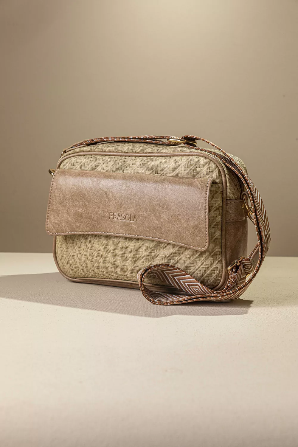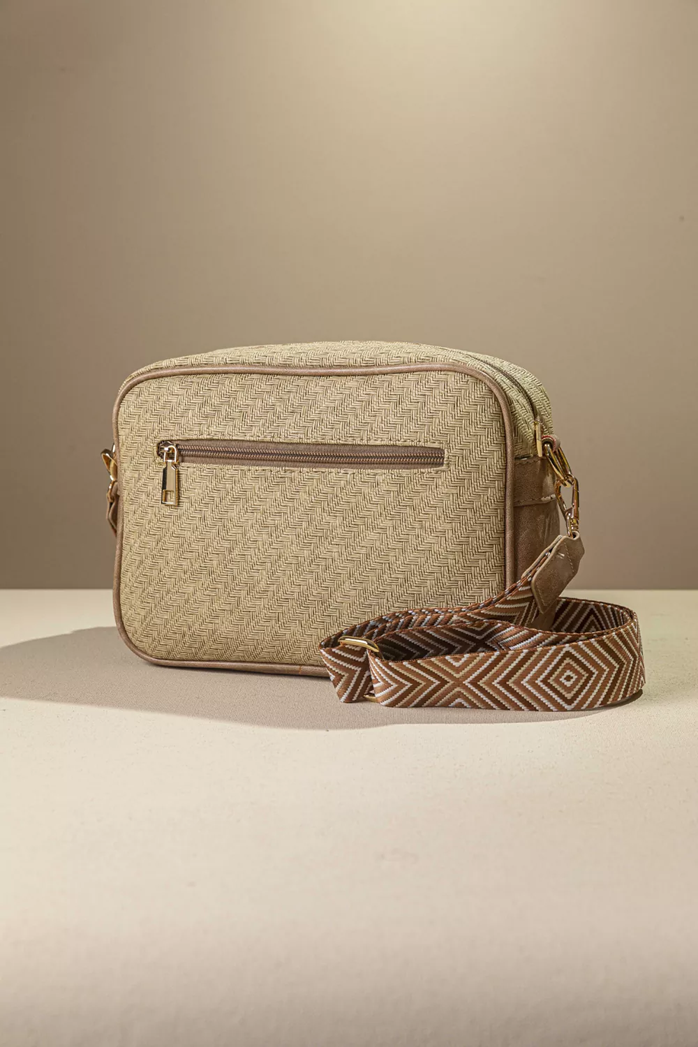 Υλικό: Συνθετικό δέρμα με υφή ψάθας σε γήινες αποχρώσεις