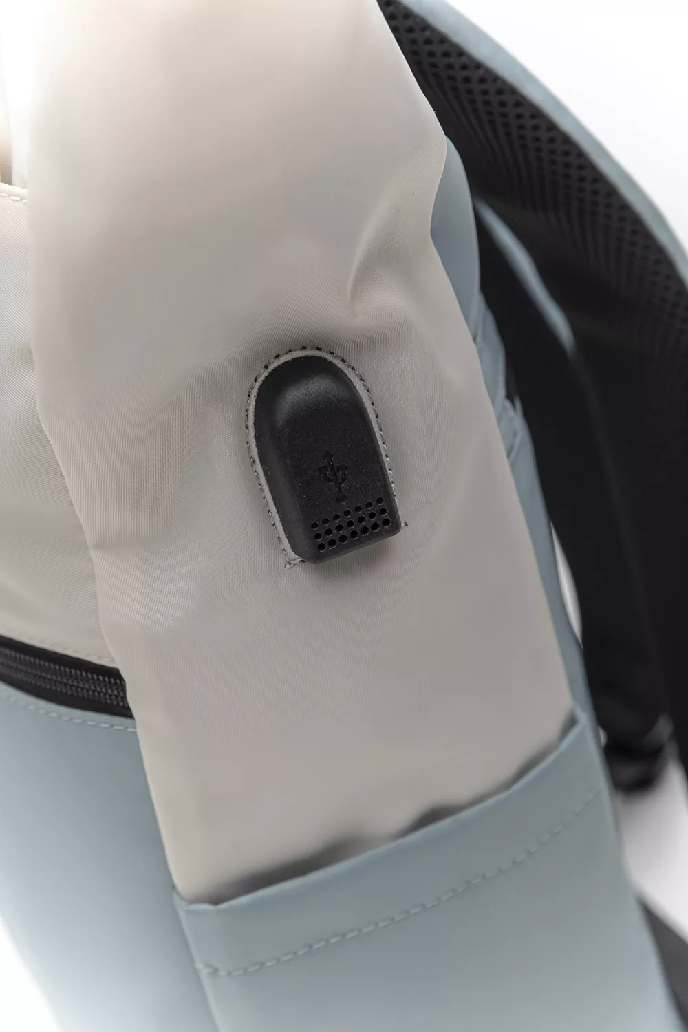 Εσωτερικός μεγάλος χώρος με διαχωρισμένη θέση για λάπτοπ. Μπροστινές εξωτερικές μεγάλες τσέπες που κλείνουν με φερμουάρ και επίσης μπροστινή μεγάλη τσέπη που κλείνει με καπάκι. Μεγάλη τσέπη στο πίσω μέρος με φερμουάρ και μεγάλη λωρίδα για να προσαρμόζεται σε βαλίτσα για τα ταξίδια σας. Εξωτερικές πλαϊνές θέσεις. Θύρα και καλώδιο usb στο εξωτερικό και εσωτερικό πλαϊνό. Τα staps του είναι ενισχυμένα με μαλακό υλικό εσωτερικά για μεγαλύτερη άνεση και αντοχή.