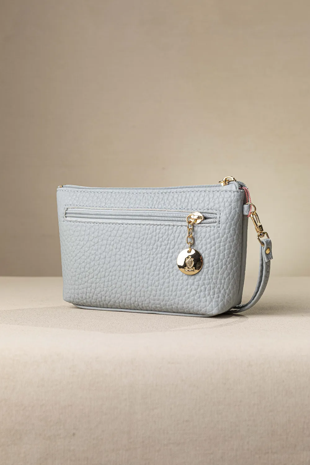 Νεσεσέρ χειρός τριθέσιο, με εσωτερικό δεύτερο φερμουάρ που διαχωρίζει τις 3 θέσεις. Πολύ πρακτικό για όλη την ημέρα σας τσαντάκι χειρός ή μέσα στην τσάντα για τα απαραίτητα μικροαντικείμενα σας ή το μακιγιάζ σας. Διακοσμητικό μεταλλικό τελείωμα στο εξωτερικό φερμουάρ.