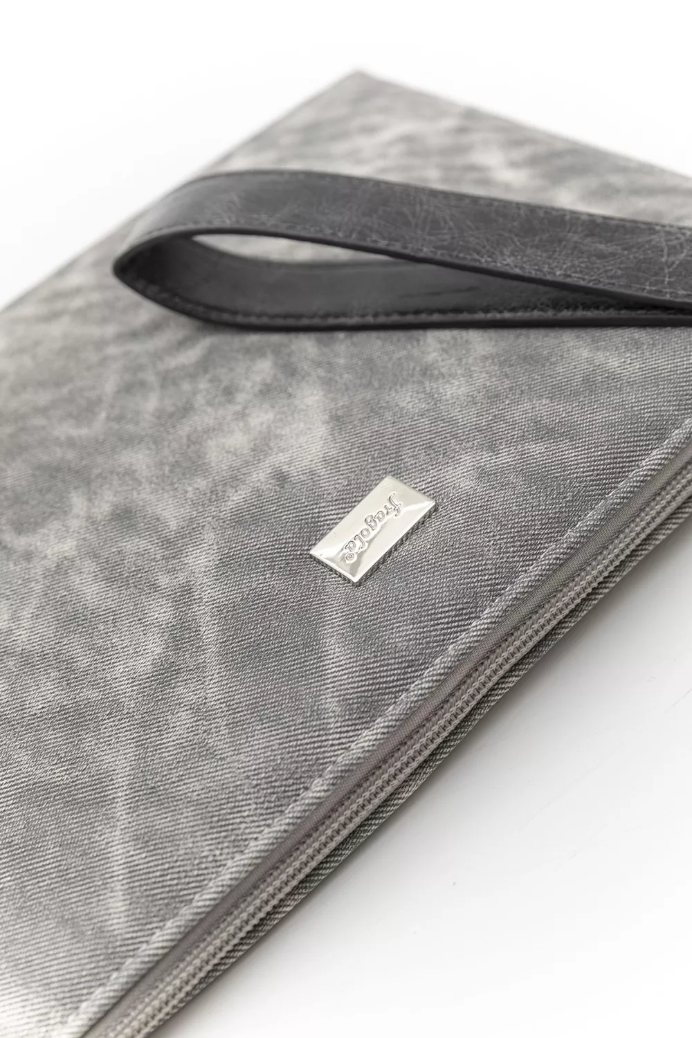 Μεγάλος φάκελος πλακέ σταθερός με φερμουάρ και χειρολαβή. Επιπλέον μακρύ αυξομειούμενο χέρι από το ίδιο υλικό που το μετατρέπει σε χιαστί τσάντα. Ένας ενιαίος χώρος με τα απαιτούμενα βοηθητικά τσεπάκια. Μια εύκολη λύση για όλη μέρα. Υλικό: Οικολογικό δέρμα με ανάγλυφο το λογότυπο της εταιρίας σε mirror printing.