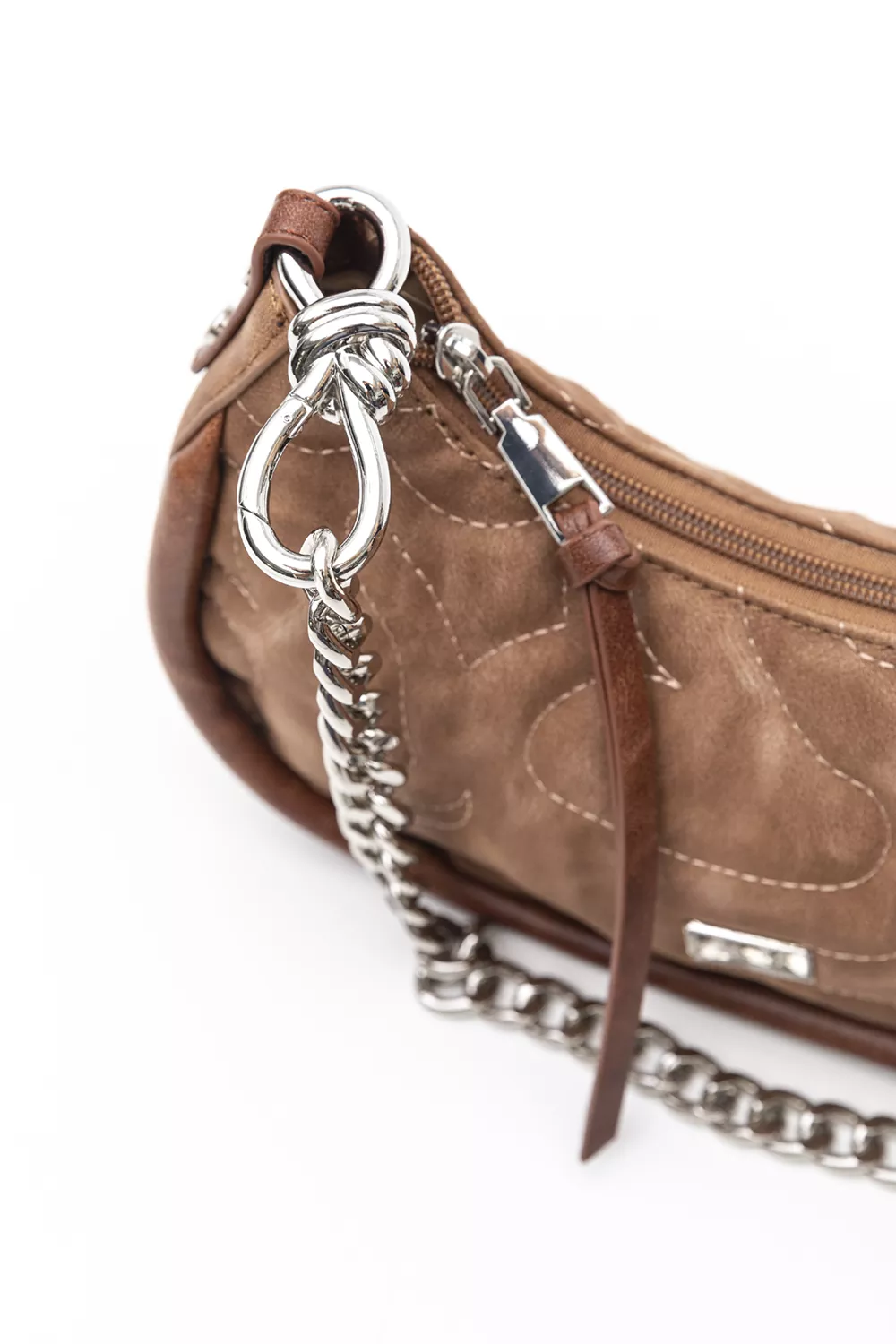 Μικρή τσάντα για όλη την ημέρα! Διαθέτει βαριά τροχισμένη αλυσίδα που πιάνεται με ιδαίτερο μεταλλικό εξάρτημα και την κάνει κατάλληλη για τις βραδινές εξόδους σας. Το πρωί μπορείτε να τη μετατρέψετε σε χιαστί με το έξτρα χεράκι που διαθέτει η τσάντα.Υλικό: Μαλακό υλικό με puffy κυματοειδή γαζιά και σταθερό πάτο.
