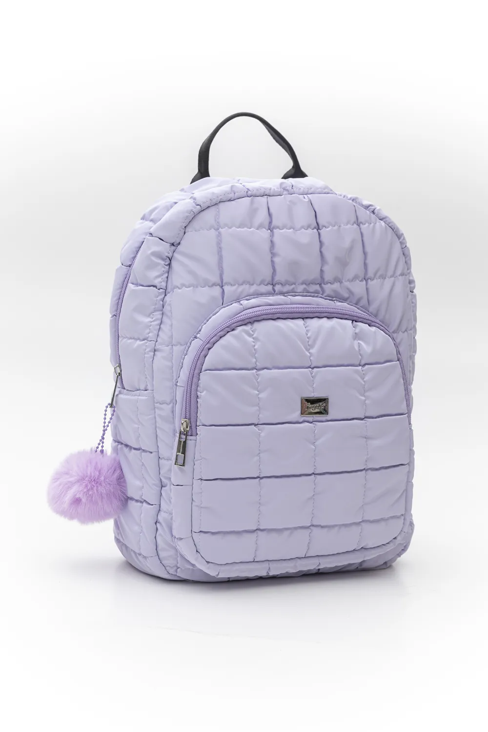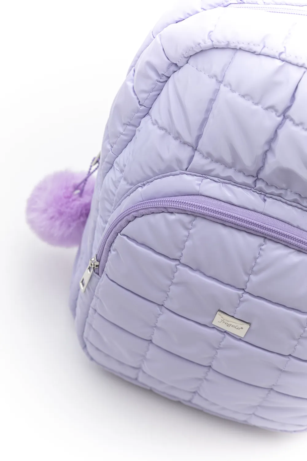 Puffer σακίδιο για όλες τις ηλικίες. Στο μπροστινό εξωτερικό μέρος υπάρχει μεγάλη βοηθητική τσέπη με φερμουάρ. Κλείσιμο με φερμουάρ και ιδιαίτερο γούνινο τελείωμα.Υλικό: Puffer αδιάβροχο