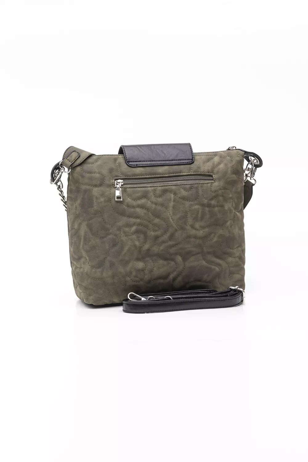 Πολυμορφική τσάντα μεσαίου μεγέθους. Ενιαίος εσωτερικός χώρος με τα βοηθητικά τσεπάκια και εξωτερική βοηθητική τσέπη με φερμουάρ και έξτρα κλείσιμο με μικρό καπάκι με κλειδαριά. Διαθέτει τρία διαφορετικά χέρια. Ένα χέρι ώμου για ολη την ημέρα. Χοντρή αλυσίδα που μπορεί να χρησιμοποιηθεί είτε ως διακοσμητικό της τσάντας είτε ως χέρι ώμου για βραδινή έξοδο. Τρίτο χέρι με το οποίο μπορεί να κρατηθεί χιαστί.Υλικό: Συνθετικό δέρμα με μαλακή υφή και puffy κυματοειδή γαζιά.