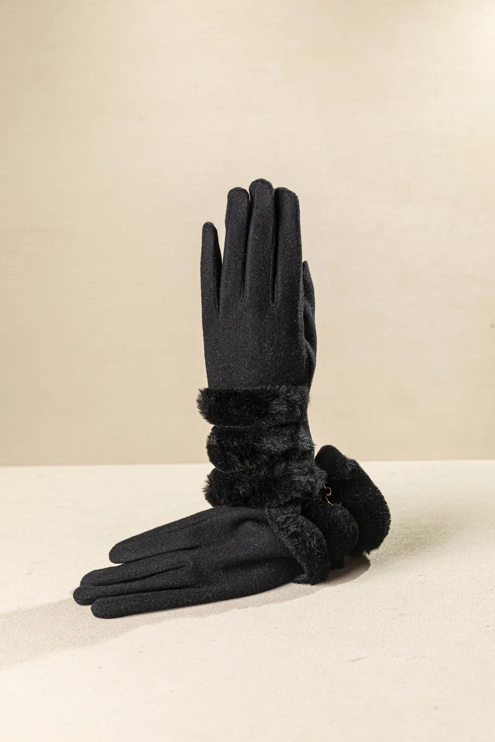 Κομψά και ζεστά γυναικεία γάντια με απαλή αφή και πολυτελή λεπτομέρεια με οικολογική γούνα στον καρπό.Ιδανικά για τις κρύες μέρες του Χειμώνα προσφέρουν στυλ και προστασία από το κρύο. Συνδιάζονται εύκολα με κάθε outfit. Διαθέτει ειδικό κέντημα για χρήση σε οθόνες αφής στον δείκτη και τον αντίχειρα και των δύο χεριών.