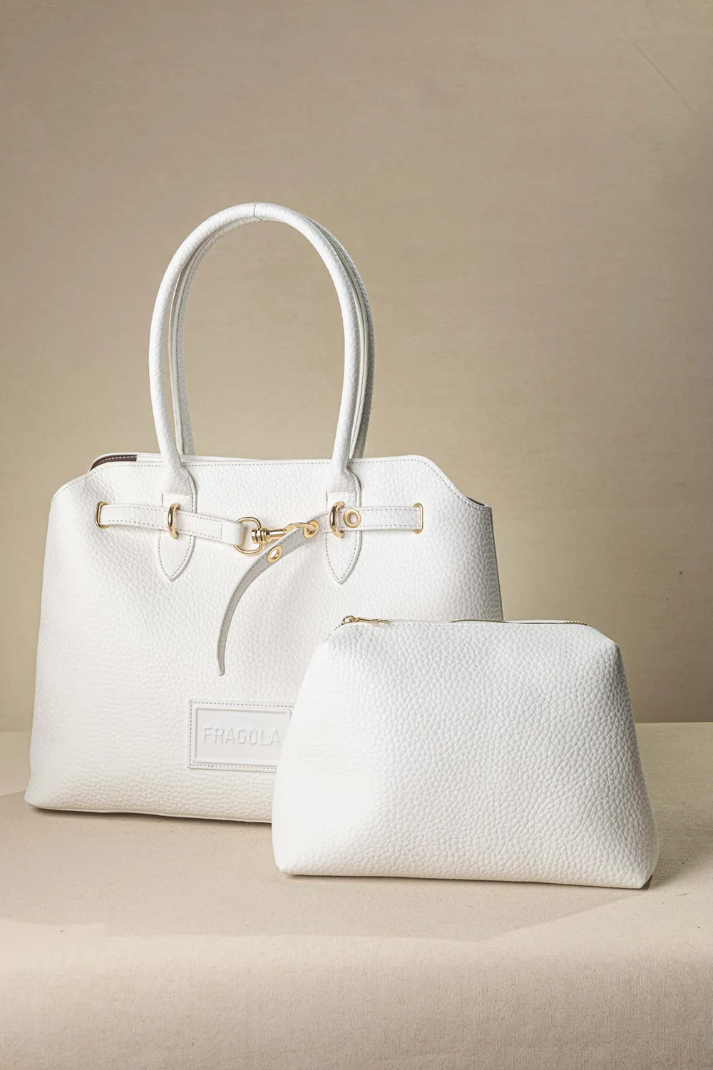 Τετράγωνη τσάντα ώμου, μεγάλης χωρητικότητας, η κατάλληλη επιλογή για όλη την ημέρα. Η τσάντα κλείνει με μαγνητικό μπουτόν. Περιλαμβάνει ευρύχωρο εσωτερικό τσαντάκι που ασφαλίζει με φερμουάρ. Εντυπωσιακό μεταλλικό κούμπωμα στο μπροστινό της μέρος της κάνουν ακόμα πιο ιδιαίτερη.
