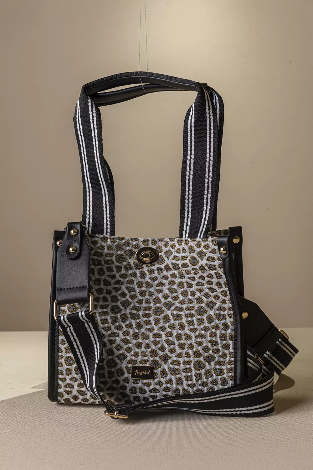 • Υφασμάτινη τσάντα με εντυπωσιακό μοτίβο και μοντέρνες λεπτομέρειες που ξεχωρίζουν.
