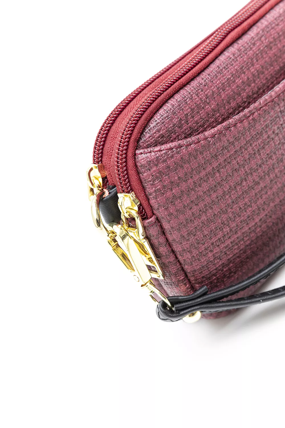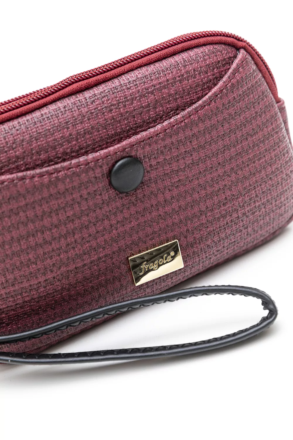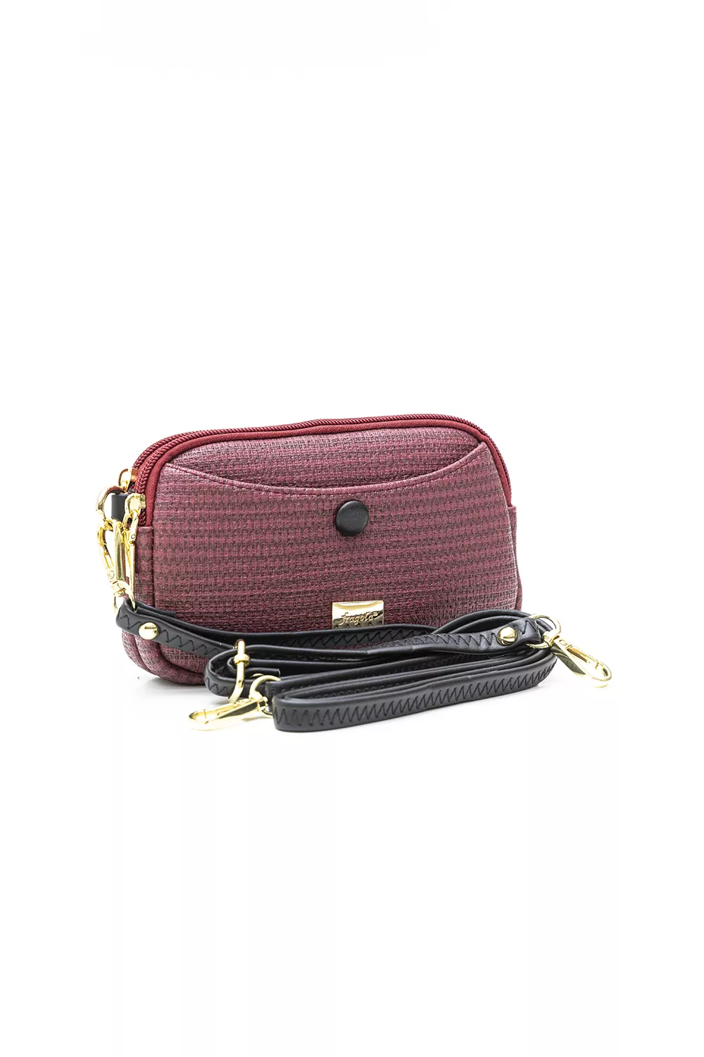 Πορτοφόλι με δύο θήκες που κλείνουν με φερμουάρ. Στη φόδρα εσωτερικά τους θα βρείτε έξτρα μια μικρή θήκη με φερμουάρ και μια χωρίς. Στο μπροστά μέρος της τσάντας υπάρχει έξτρα θήκη που κλείνει με μαγνητικό μπουτόν. Διαθέτει κοντό χεράκι για τον καρπό.Υλικό: Συνθετικό δέρμα