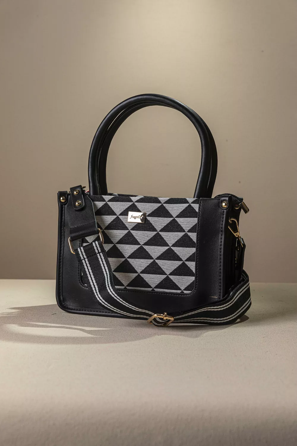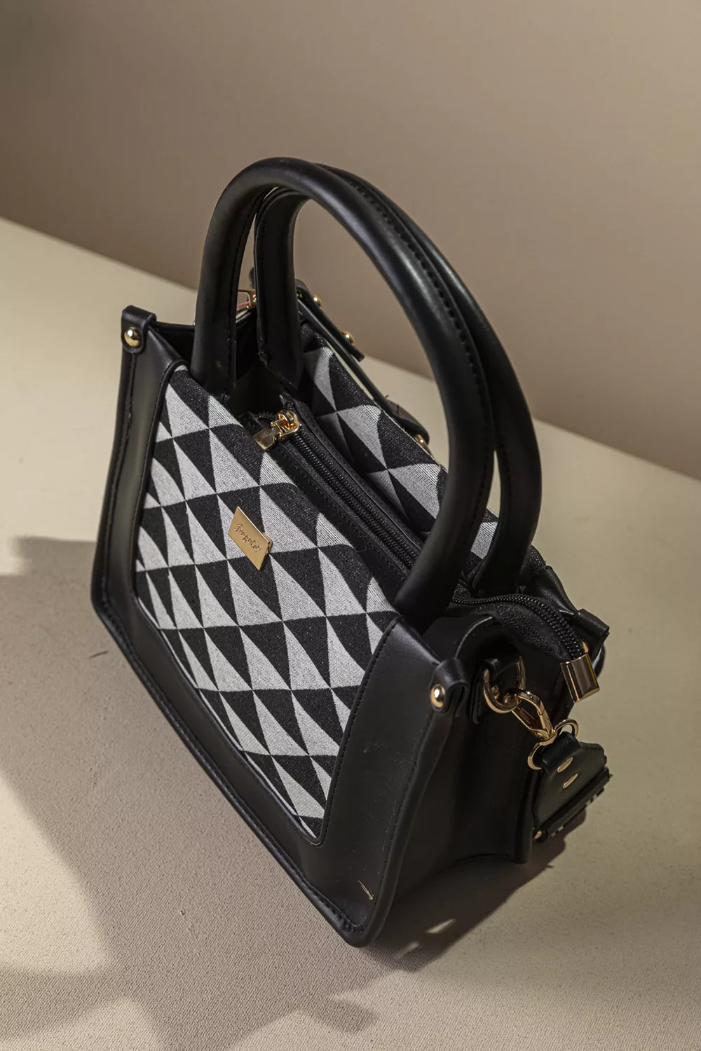 • Υφασμάτινη τσάντα με εντυπωσιακό μοτίβο και μοντέρνες λεπτομέρειες που ξεχωρίζουν. Διαθέτει διπλά στρογγυλά χέρια για κράτημα στο χέρι, καθώς και αποσπώμενο ρυθμιζόμενο ιμάντα για χιαστί εφαρμογή, προσφέροντας άνεση και ευελιξία σε κάθε περίσταση.