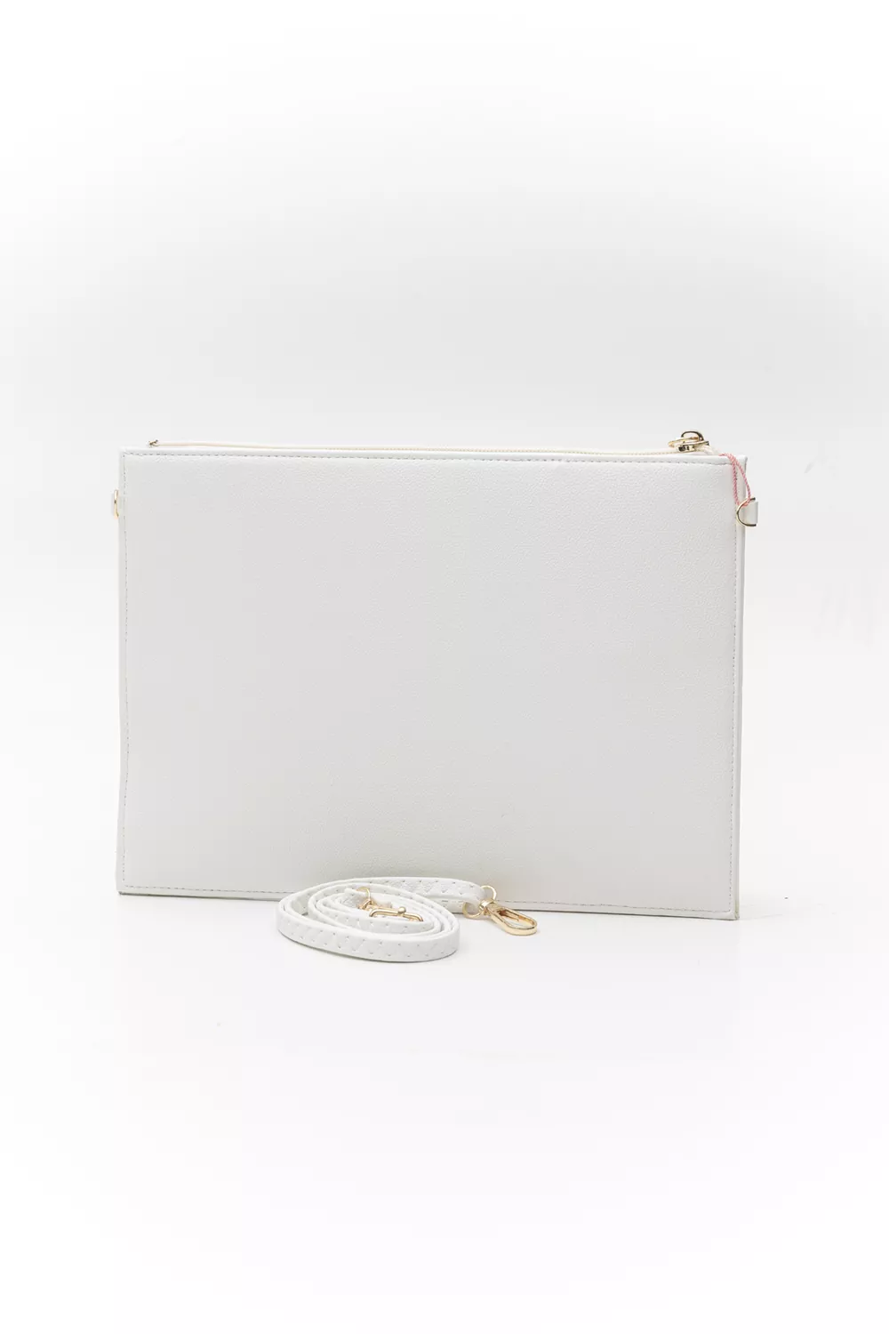 Μεγάλος φάκελος πλακέ σταθερός με φερμουάρ και χειρολαβή. Επιπλέον μακρύ αυξομειούμενο χέρι από το ίδιο υλικό που το μετατρέπει σε χιαστί τσάντα. Ένας ενιαίος χώρος με τα απαιτούμενα βοηθητικά τσεπάκια. Μια εύκολη λύση για όλη μέρα. Υλικό: Οικολογικό δέρμα με ανάγλυφο το λογότυπο της εταιρίας σε mirror printing.