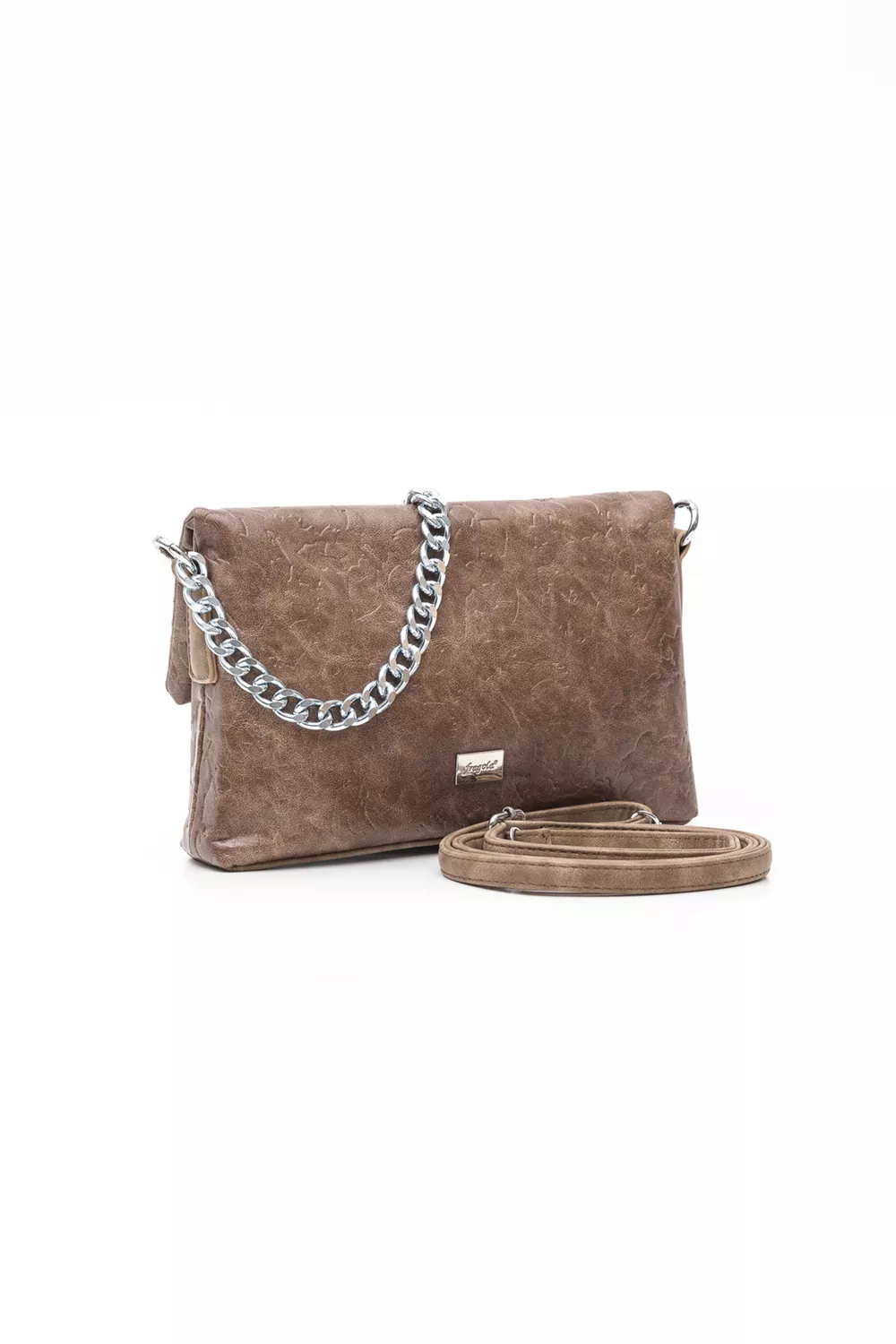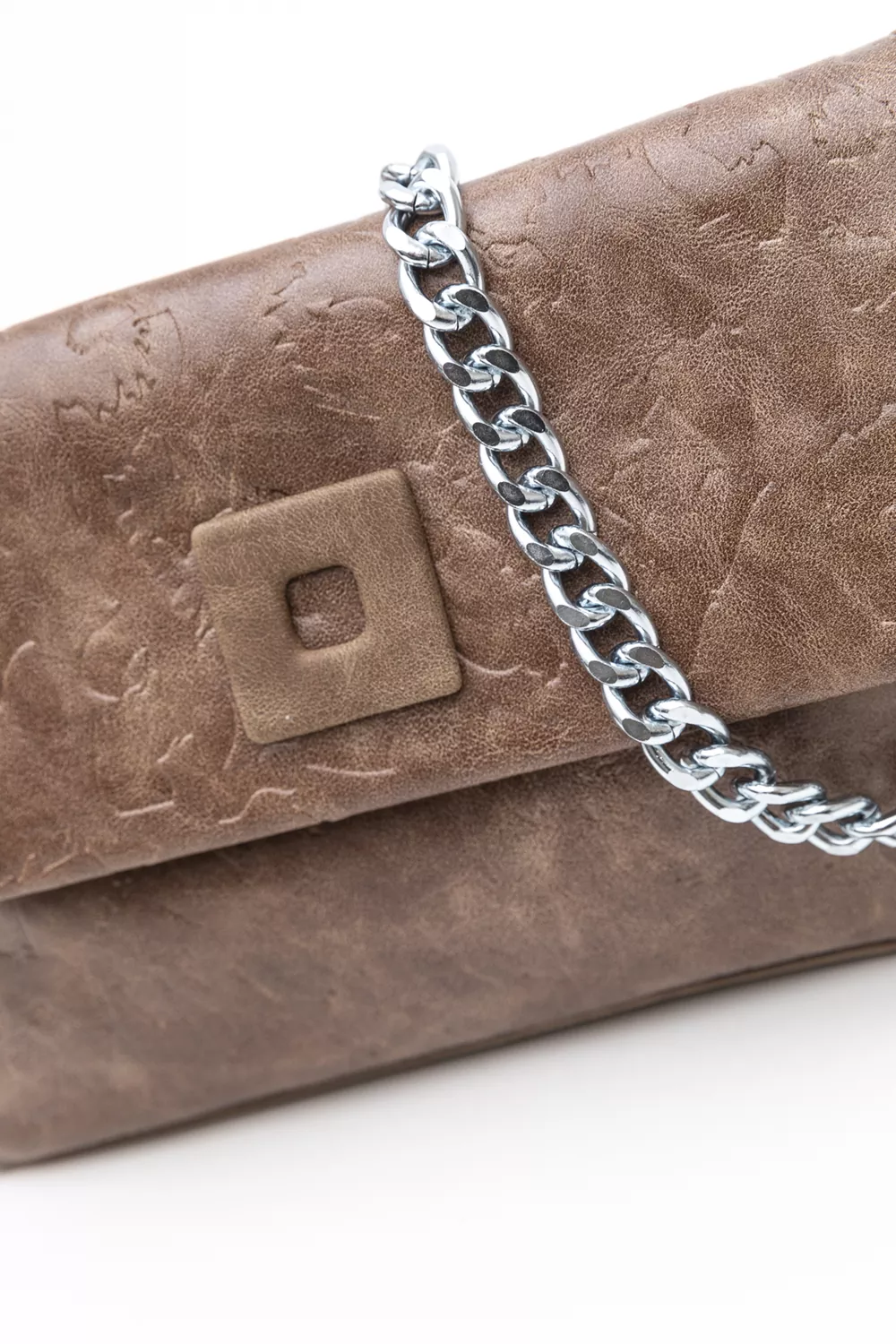 Soft μεσαία τσάντα πολυχρηστική καθώς μπορεί να κρατηθεί σαν φάκελος, χιαστί ή στον ώμο. Εντυπωσιακή φιγούρα ντυμένη με υλικό. Διπλώνει και κλείνει με δεύτερα μαγνητικά button. Βοηθητικές μικρές θέσεις στο εσωτερικό της τσάντας και μια βοηθητική τσέπη με φερμουάρ στο πίσω μέρος της. Διαθέτει αλυσίδα για τον ώμο και έξτρα χεράκι για χιαστί.Υλικό: Συνθετικό δέρμα σταμπωμένο με πυρογραφία με ανάγλυφο αποτέλεσμα.