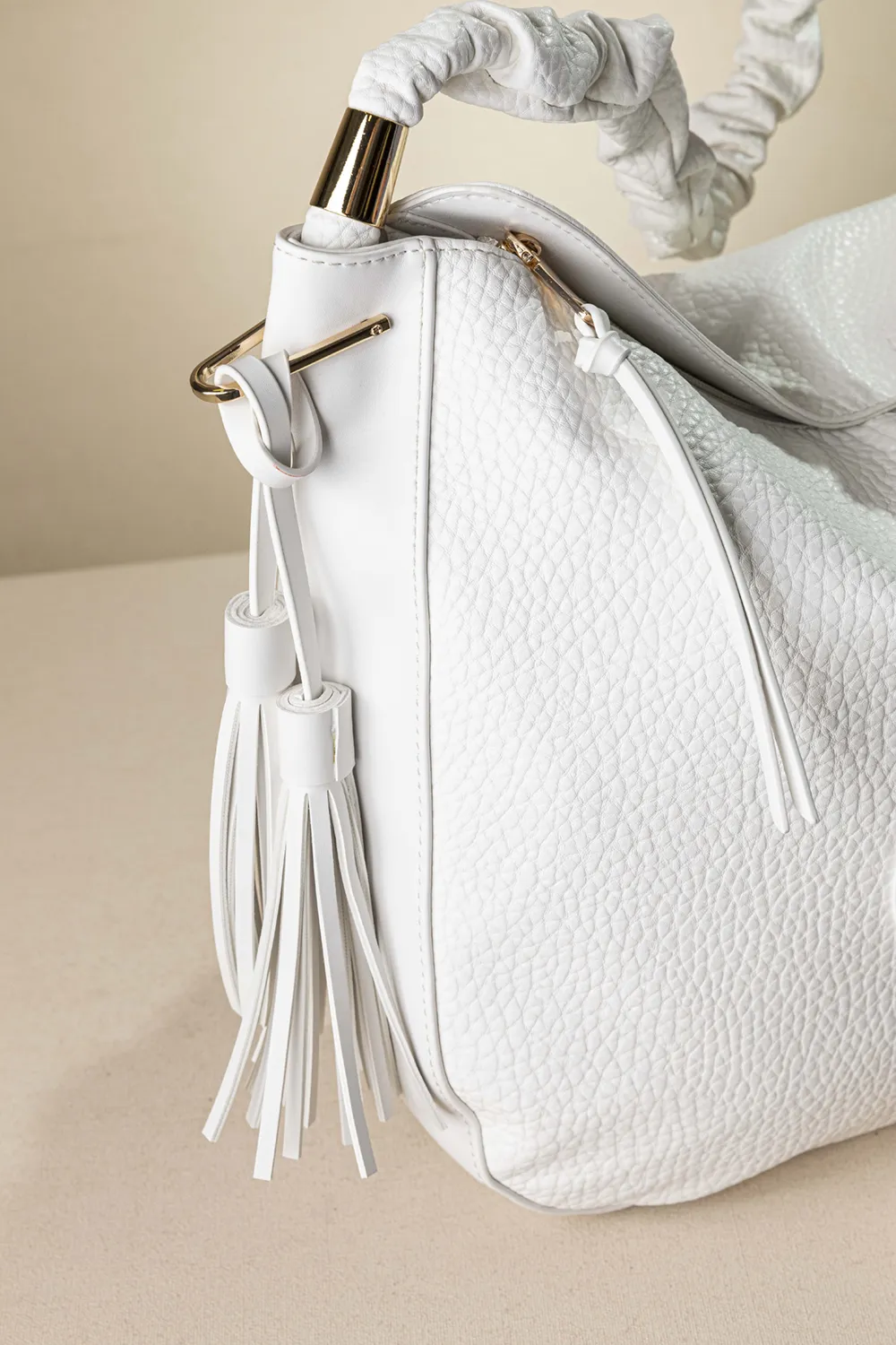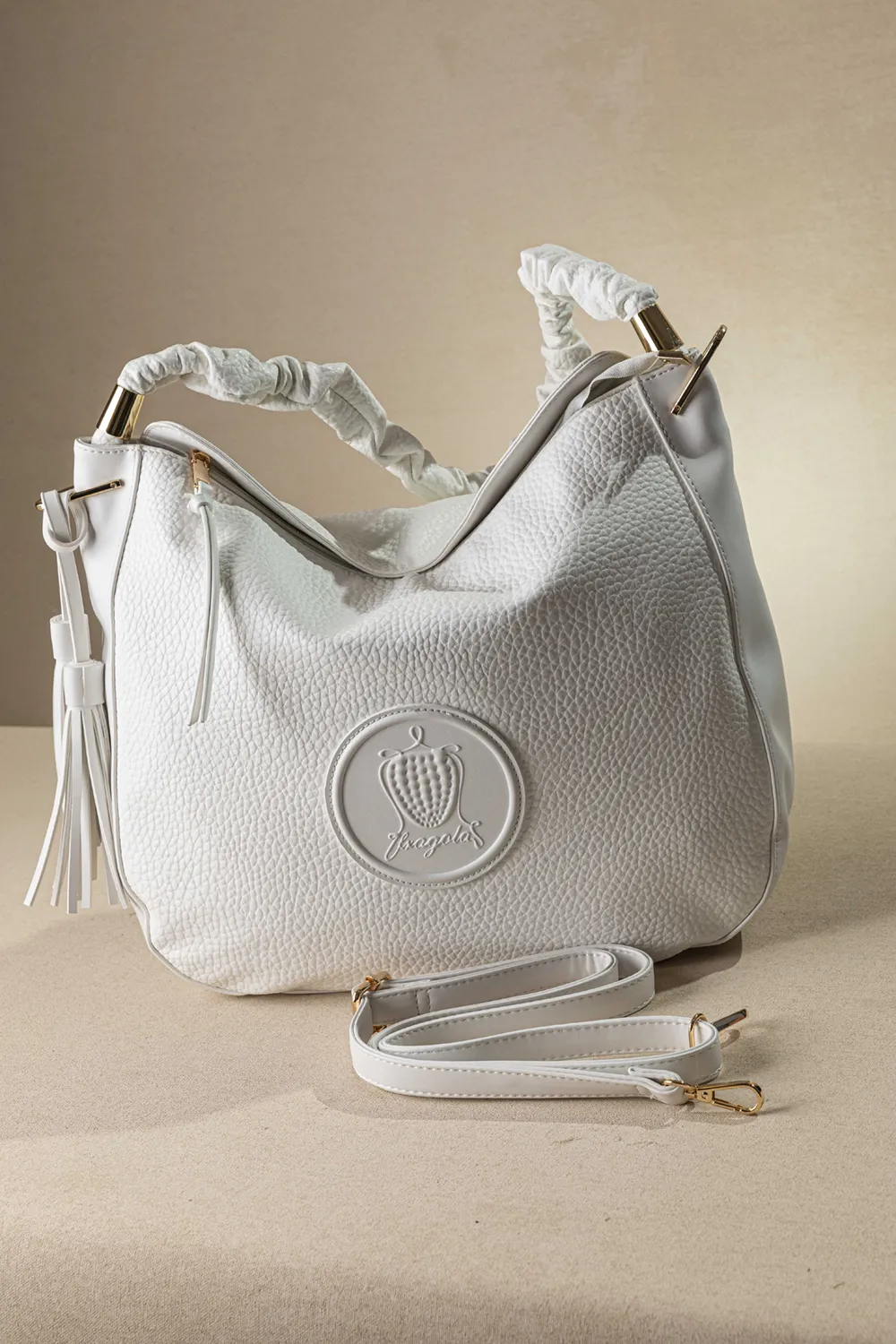 Μεγάλη μαλακή τσάντα που κλείνει με φερμουάρ κατάλληλη για όλη τη μέρα. Στο εσωτερικό της υπάρχει διαχωριστικό με φερμουάρ, το κλασικό τσεπάκι με φερμουάρ και όλα τα βοηθητικά τσεπάκια για τα μικροαντικείμενα σας. Στο πίσω μέρος της υπάρχει τσέπη με φερμουάρ. Η τσάντα διαθέτει δεξιά και αριστερά μεταλλικά εξαρτήματα τα οποία λειτουργούν σαν διακοσμήτικά αλλά και για να εφαρμοστεί το μακρύ χέρι της και να μετατραπεί σε χιαστί. Το χέρι για τον ώμο είναι από μαλακή δερματίνη και είναι πλισσαρισμένο σε χοντρό κορδόνι.