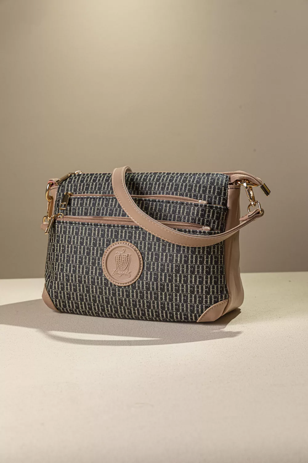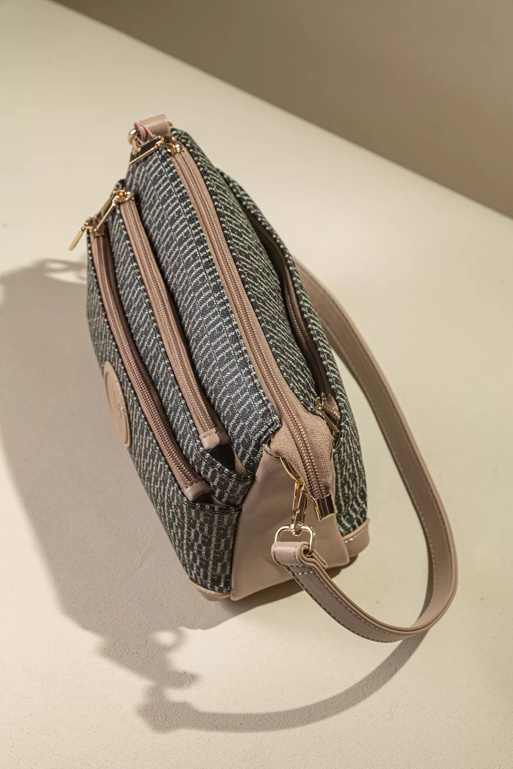 • Μια μεγάλη τσέπη με φερμουάρ στο πίσω μέρος. Διαθέτει ένα κοντό χέρι για τον ώμο και ένα μακρύ με αυξομείωση για να τη φοράτε χιαστί.