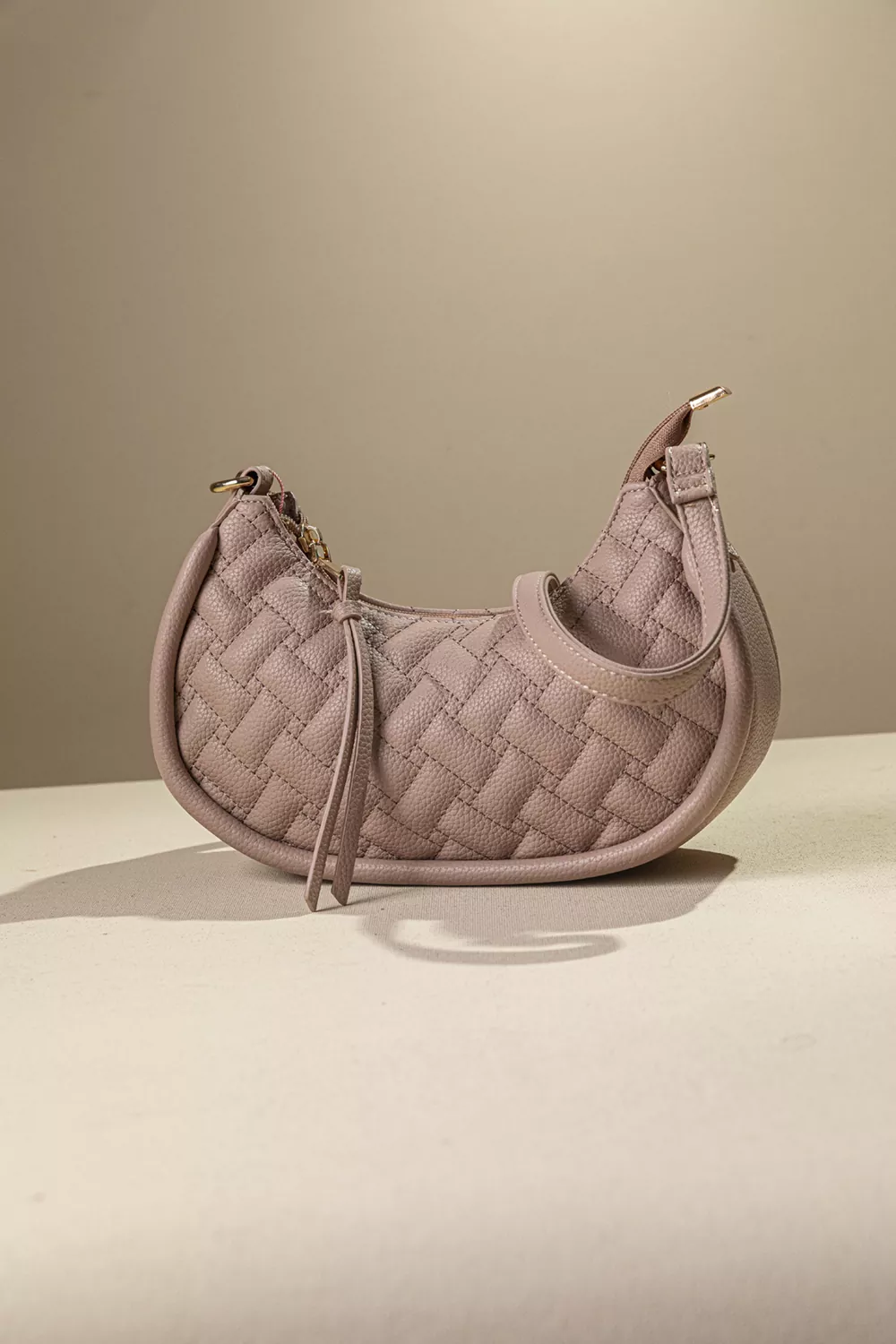 • Κομψή τσάντα ώμου με καπιτονέ σχέδιο και σχήμα μισοφέγγαρο. Ιδανική για καθημερινή και απογευματινή χρήση. Διαθέτει άνετο εσωτερικό χώρο με όλα τα απαραίτητα τσεπάκια.