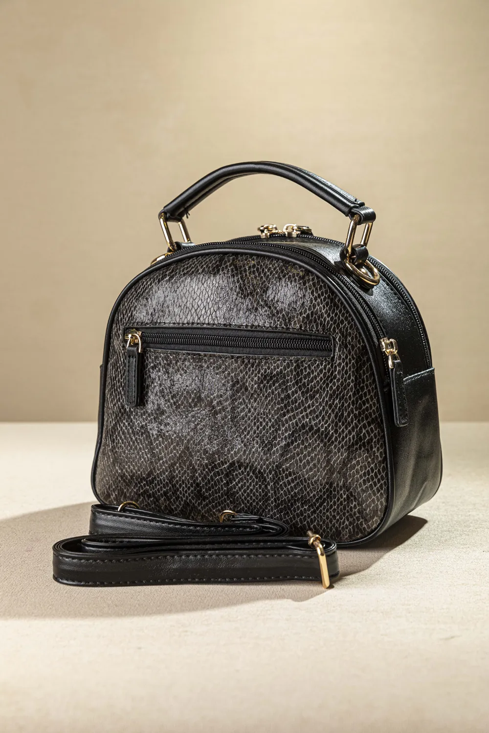 Τσάντα χεριού και ώμου, σαν βαλιτσάκι! Διαθέτει 2 διαφορετικές θήκες με φερμουάρ για να χωράει ότι χρειάζεστε να έχετε μαζί σας! Ιδανική για όλη μέρα διότι μπορείτε να τη φορέσετε και χιαστί και στον ώμο αλλά είναι υπέροχη και για μια βόλτα κρατώντας τη στο χέρι σας! Εσωτερικά θα βρείτε όλα τα απαραίτητα τσεπάκια, με φερμουάρ ή χωρίς, για τα μικροαντικείμενά σας. Στο πίσω μέρος της υπάρχει εξωτερική τσέπη με φερμουάρ. Υλικό: Μαλακό συνθετικό δέρμα με snake print.