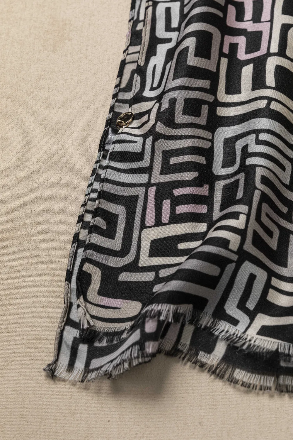 Πασμίνα με συμπαγή φλατ πλέξη. Αίσθηση μαλακού υφάσματος που σε αγκαλιάζει. Το ντεσέν του υφάσματος την κάνει κατάλληλη και για απογευματινές εμφανίσεις. Μπορεί να υποστηρίξει σχεδόν όλα τα outfit.